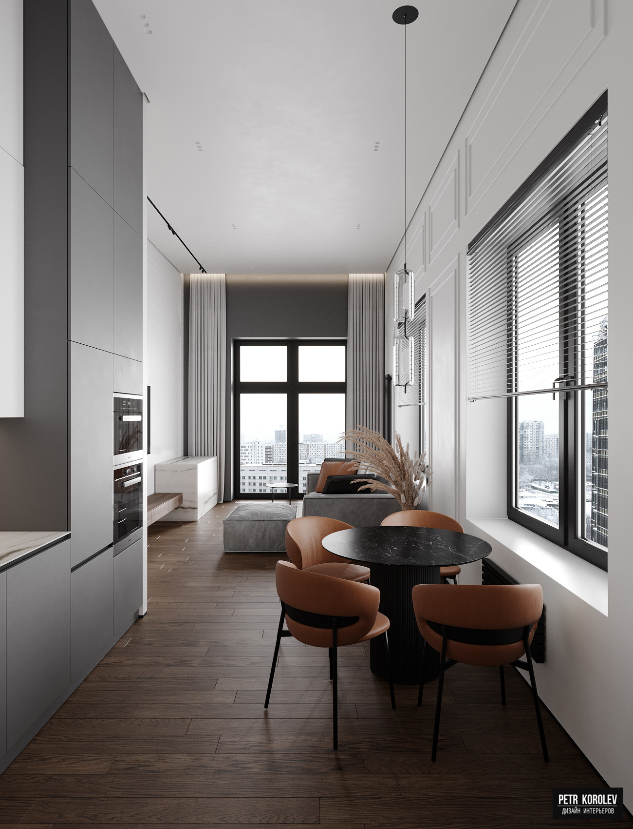 Уникальный формат: потолки 4,1м, французские окна в пол, угловая планировка с 4 окнами, которые выходят на историческую часть района и на центр. Максимально практичная планировка - нет узких коридоров или лишних санузлов.