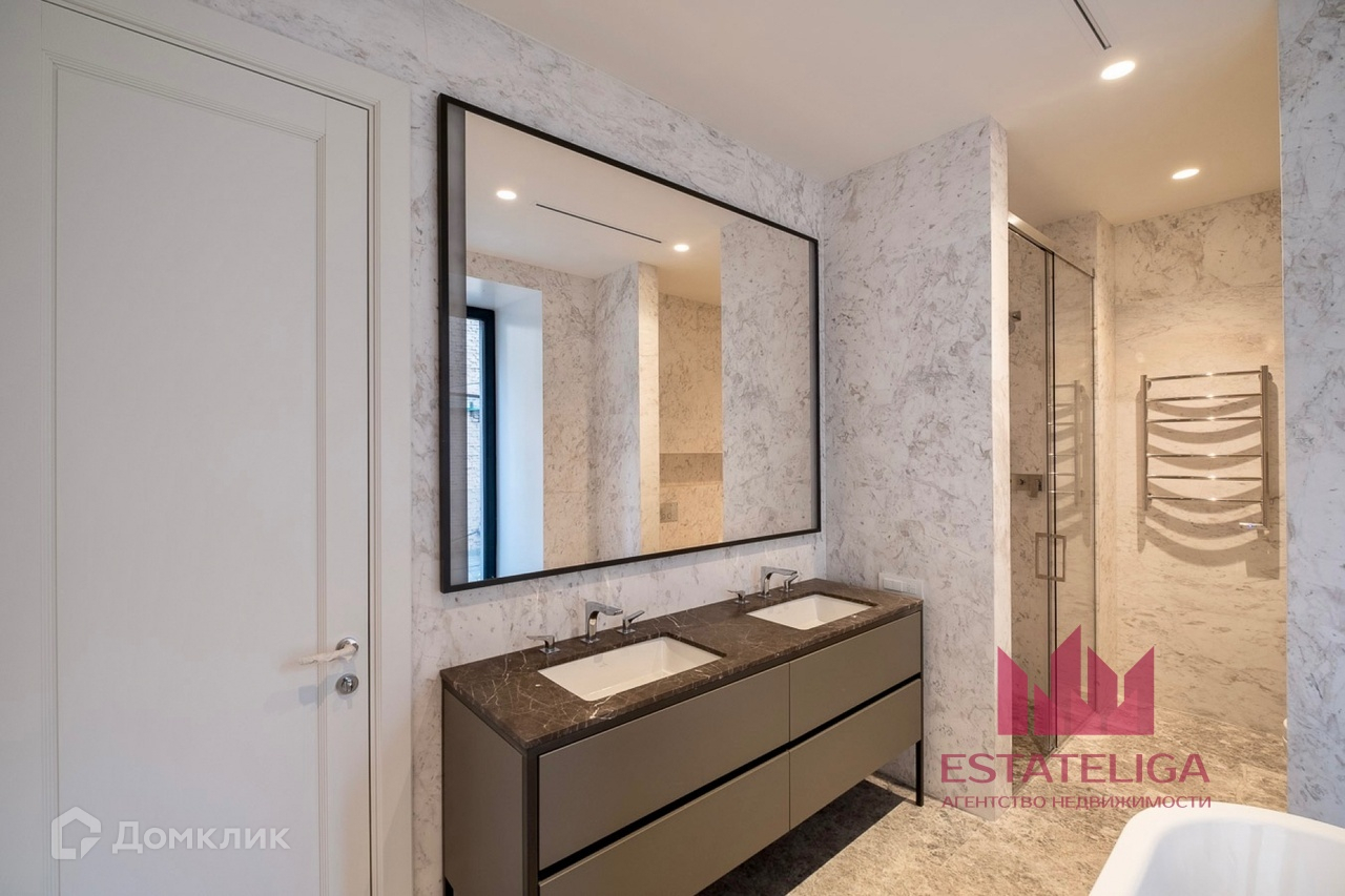 В отделке преобладают натуральные материалы — мрамор, ценные породы дерева и стекло.