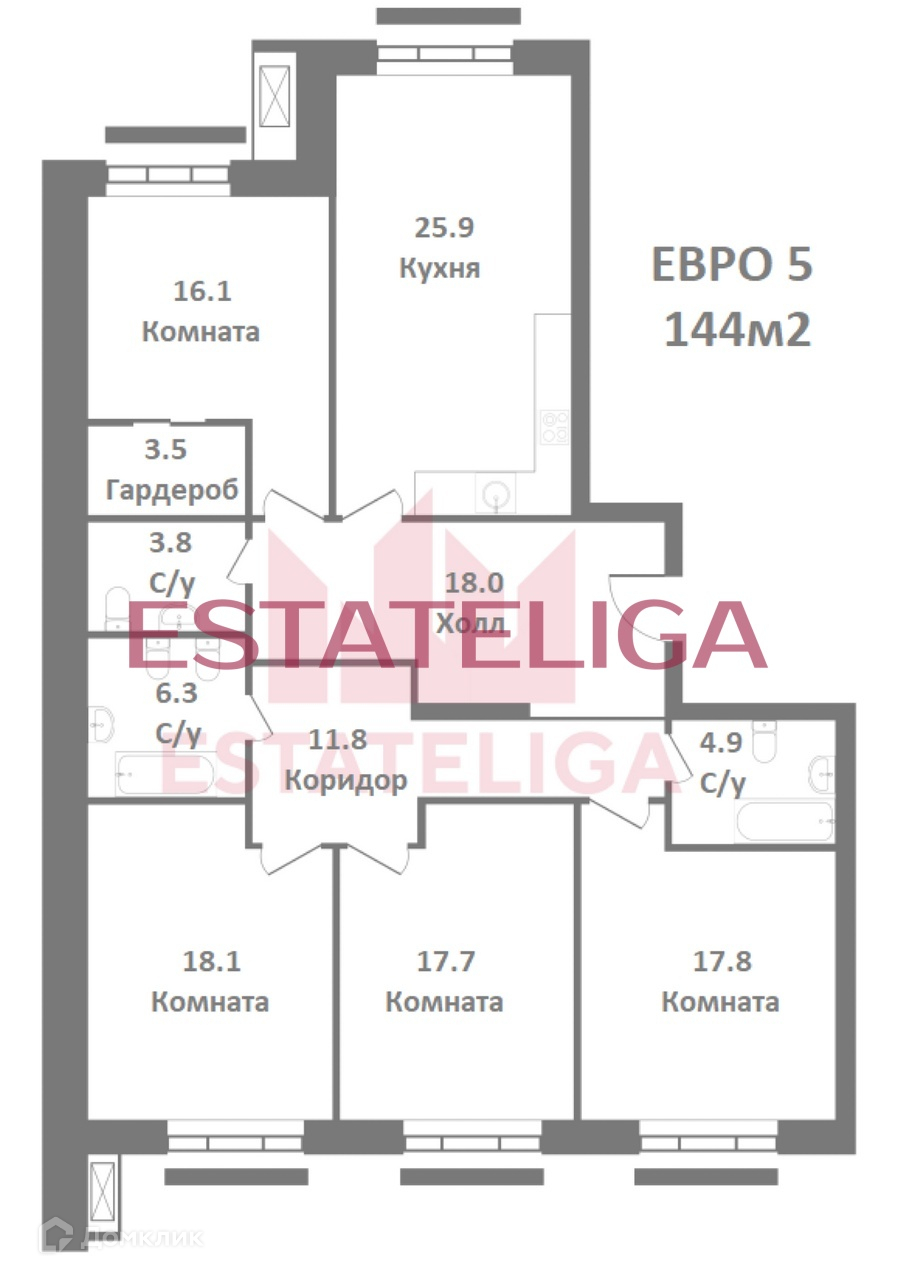 Общая площадь 144 м2