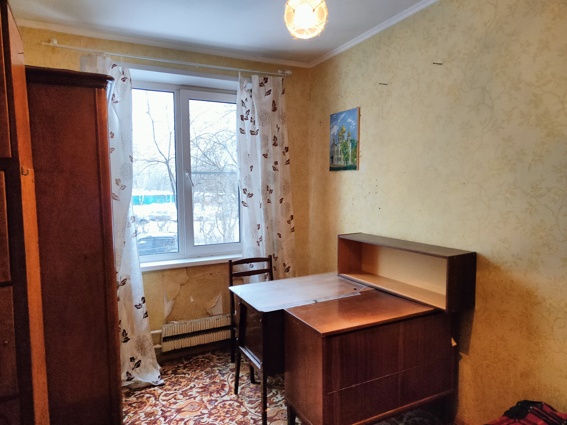 Окно выходит во двор.