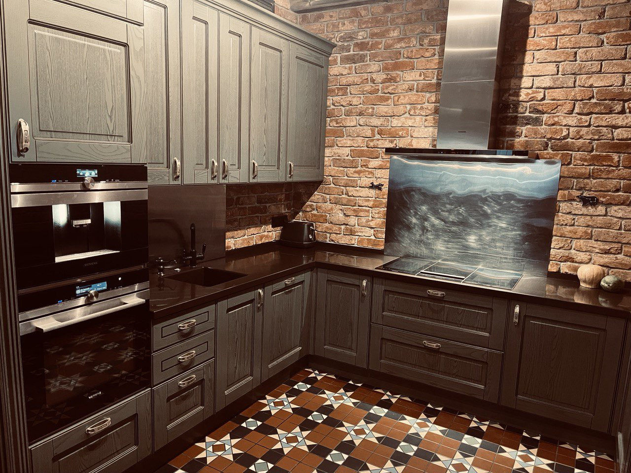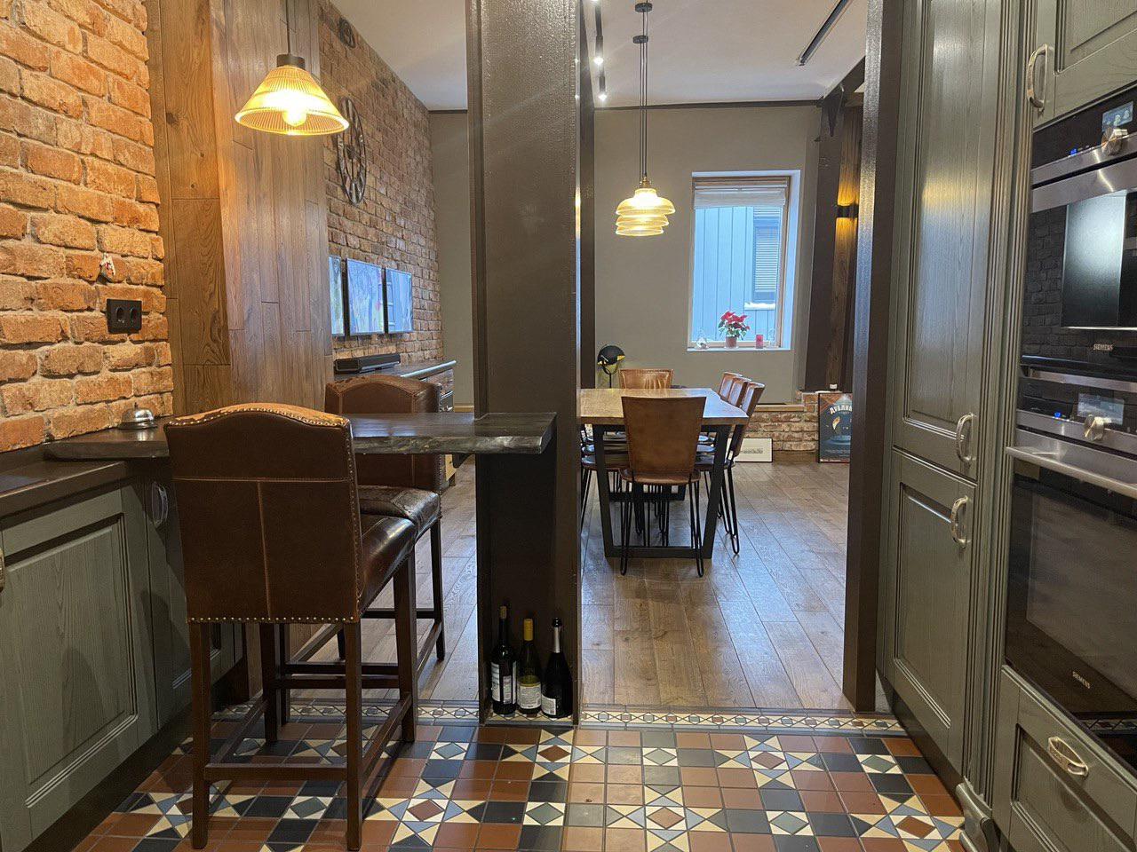 Английская плитка, дубовый паркет, кирпич XIX века.