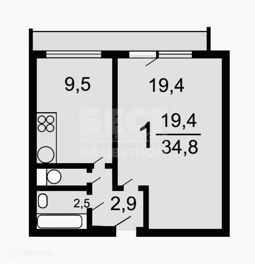 Жилая площадь 19.4 м2