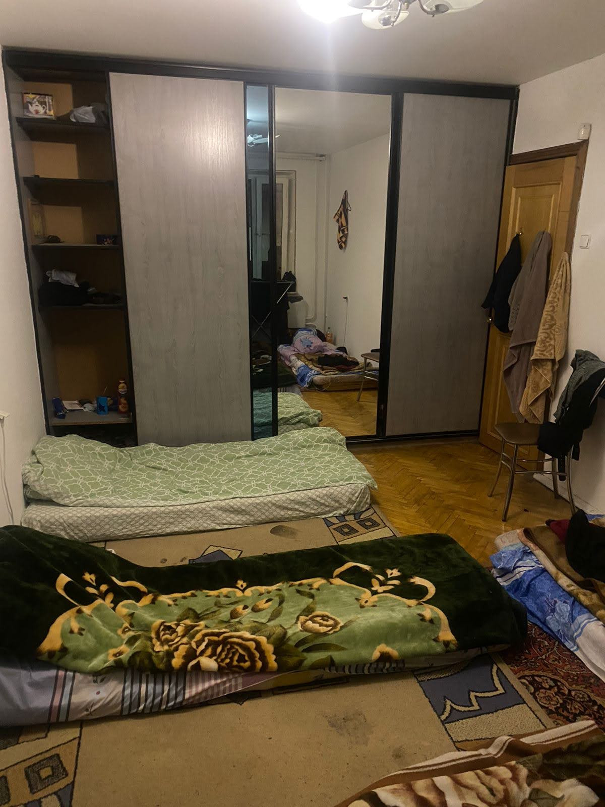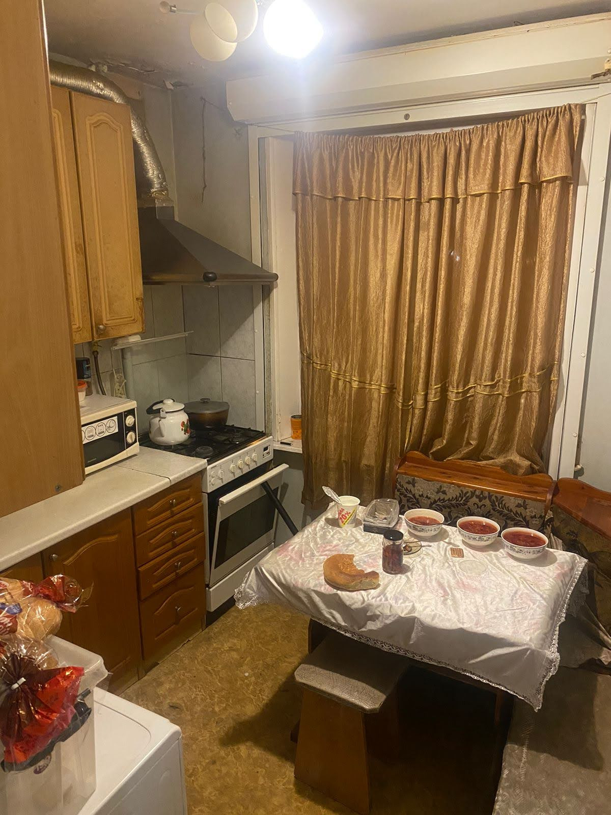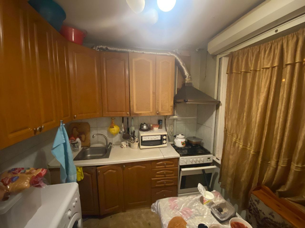 Состояние среднее, но жилое .ЛОДЖИЯ с большой комнаты, застеклена.