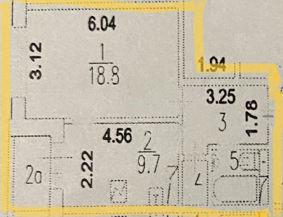 Жилая площадь 18.8 м2