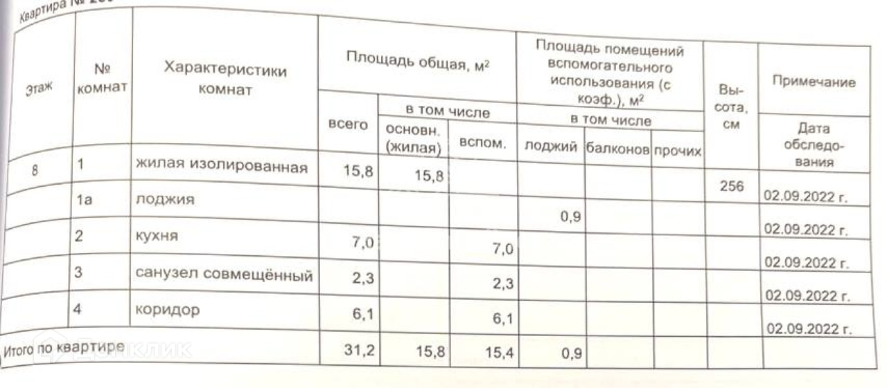 Общая площадь 31.2 м2
