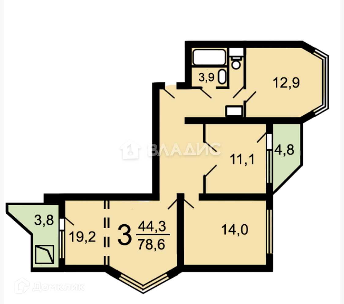 Площадь кухни:12.9 кв.м.