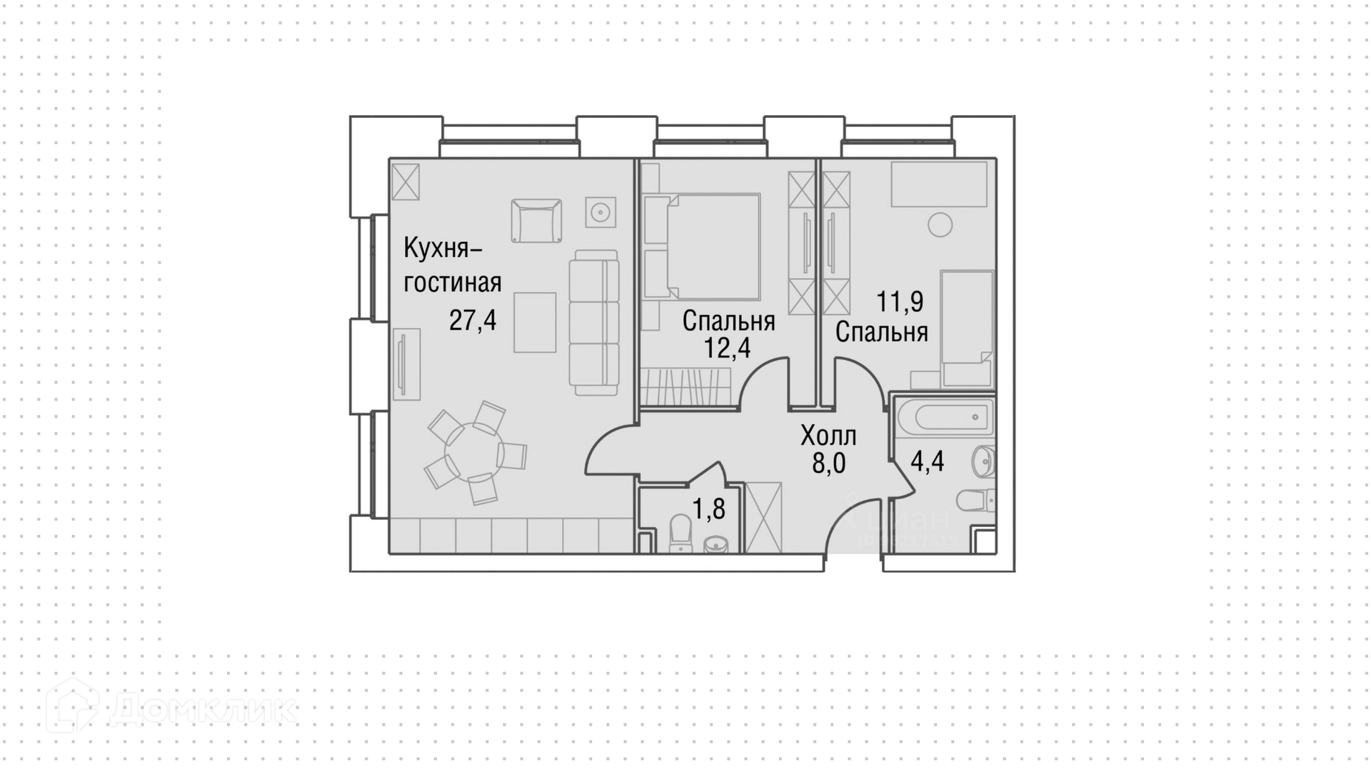 Общая площадь 68 м2