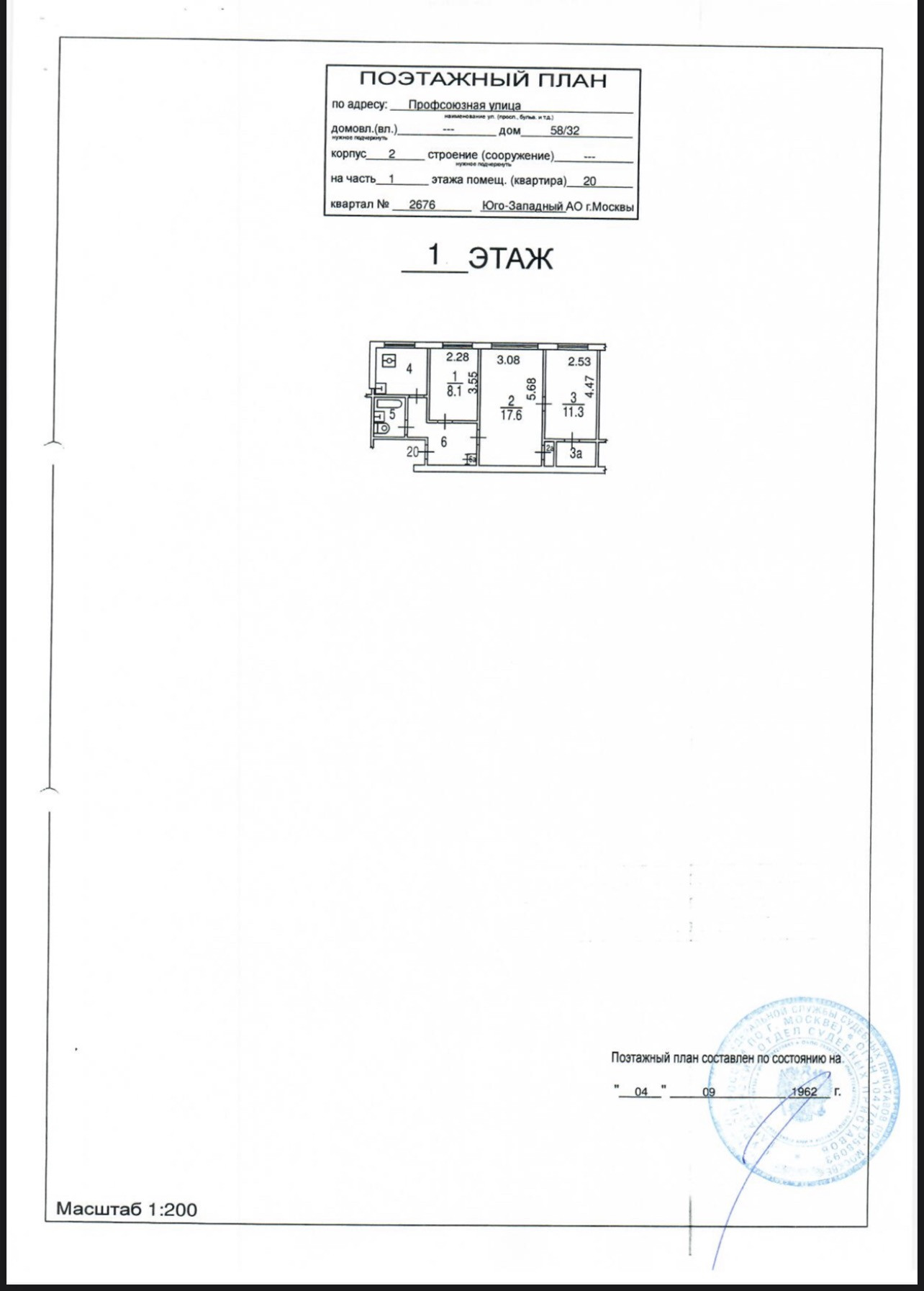 3-комнатная квартира, 55.1 м2, этаж 1 / 5, на продажу в Москве, Профсоюзная улица, 58/32к2