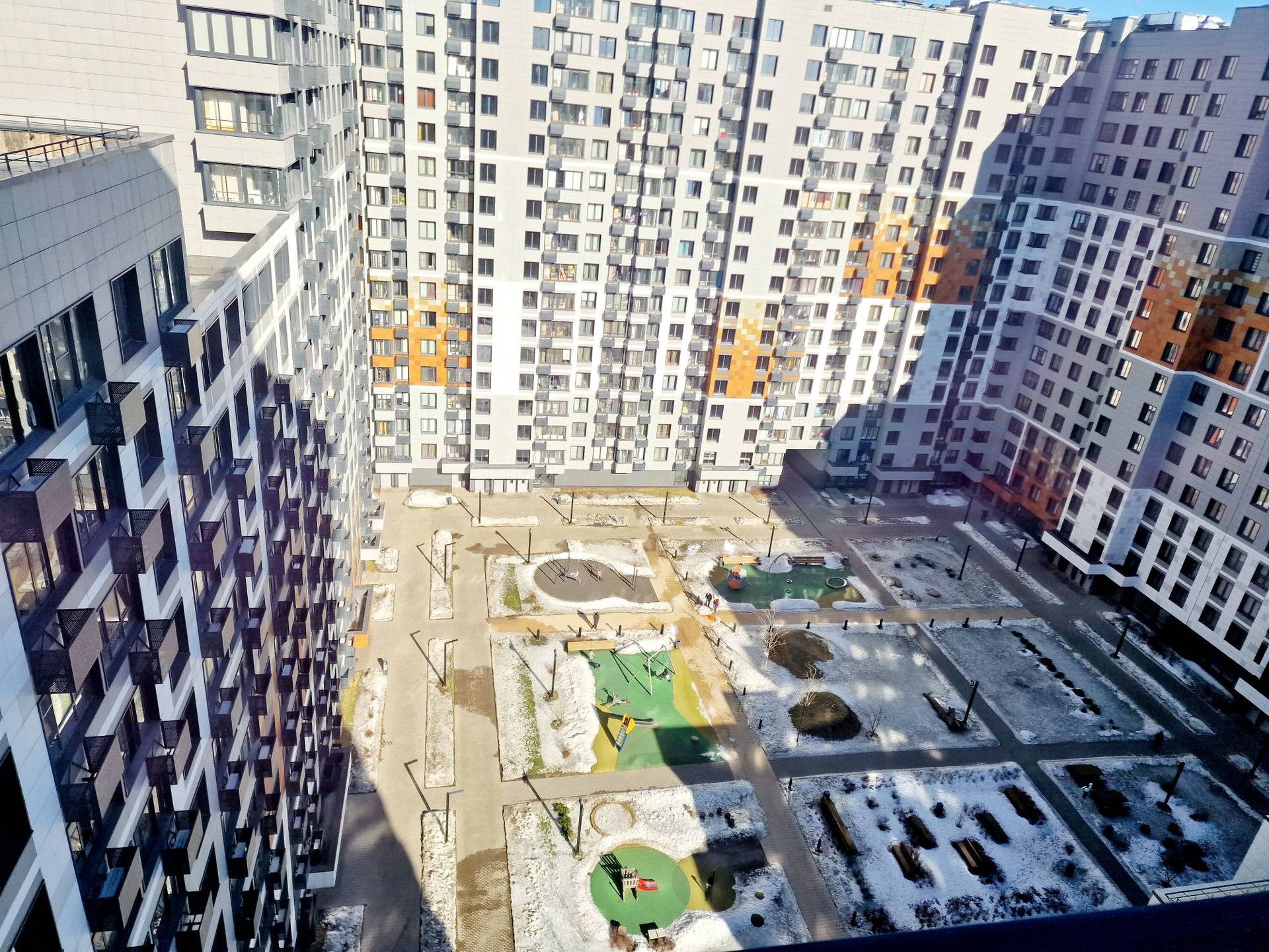 Огороженная охраняемая придомовая территория, "двор без машин", подземный паркинг (лифт из подъезда); детские площадки, прогулочные дорожки.