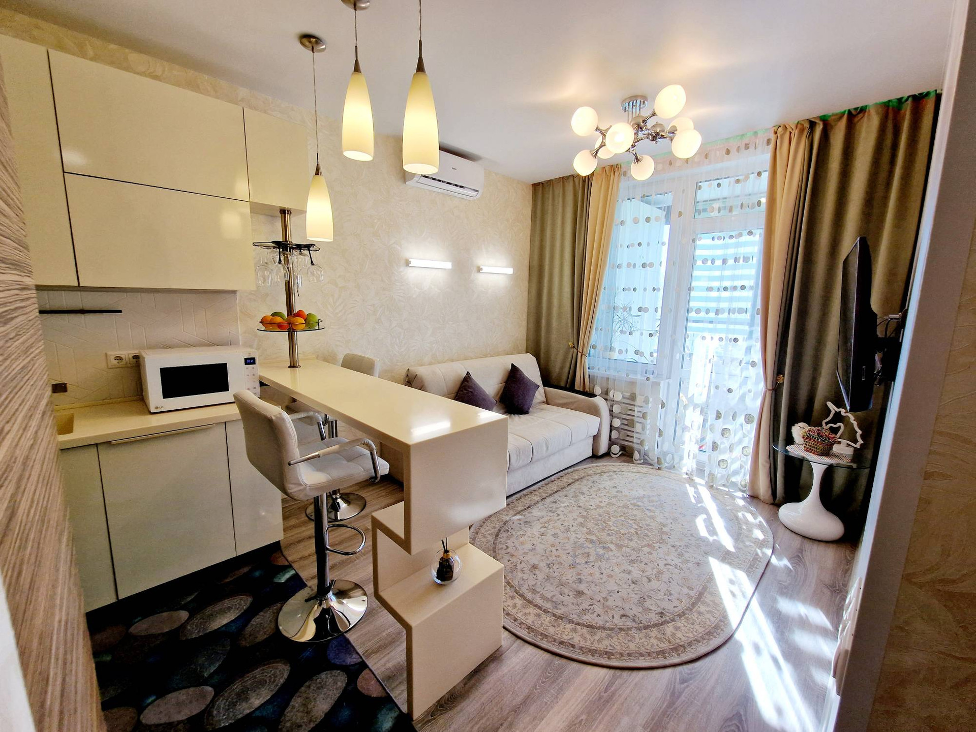 Квартира полностью меблирована и не требует вложений - встроенная кухня и техника (индукционная варочная панель Maunfeld, духовой шкаф и посудомоечная машина Bosch, холодильник Haier), стиральная машинка с сушкой LG, две сплит-системы; мебель - готова к комфортному проживанию или к арендному бизнесу.