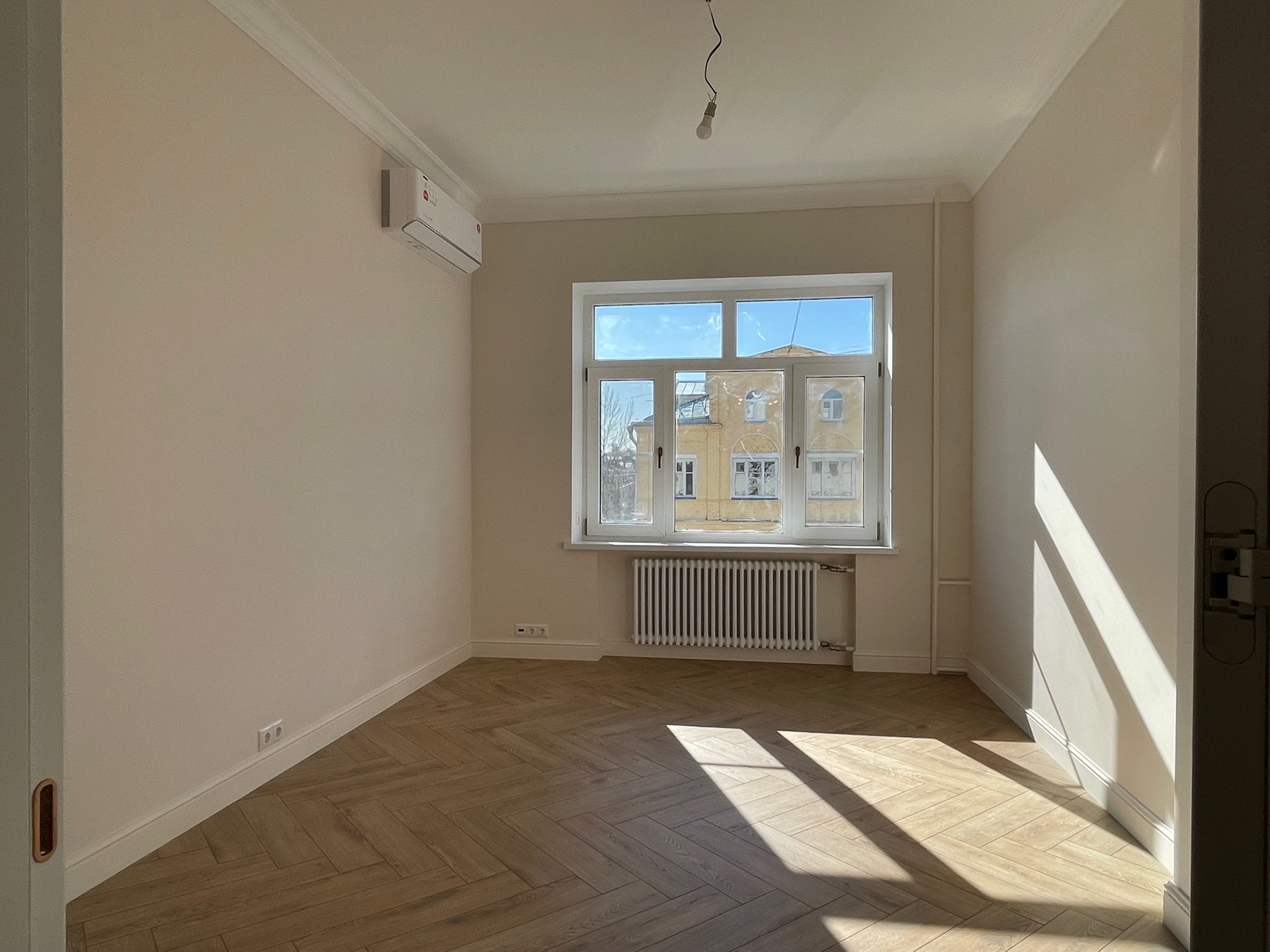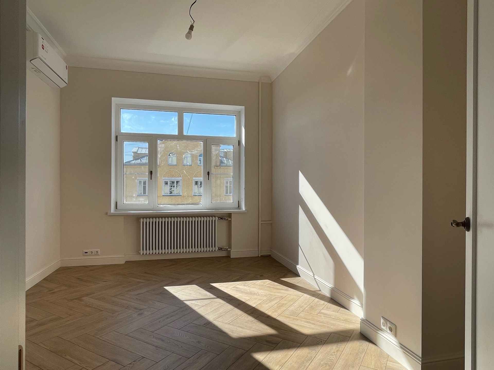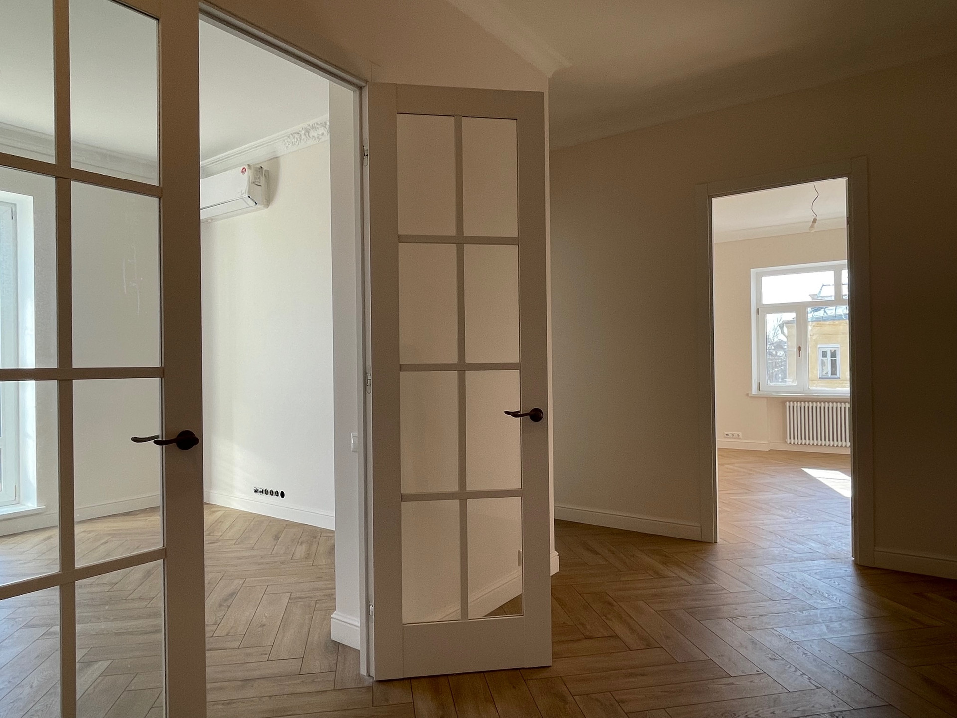 Новые радиаторы, сантехника, электрика, на окнах стеклопакеты, установлены кондиционеры с приточной вентиляцией, на полу влагостойкий ламината повышенной прочности.