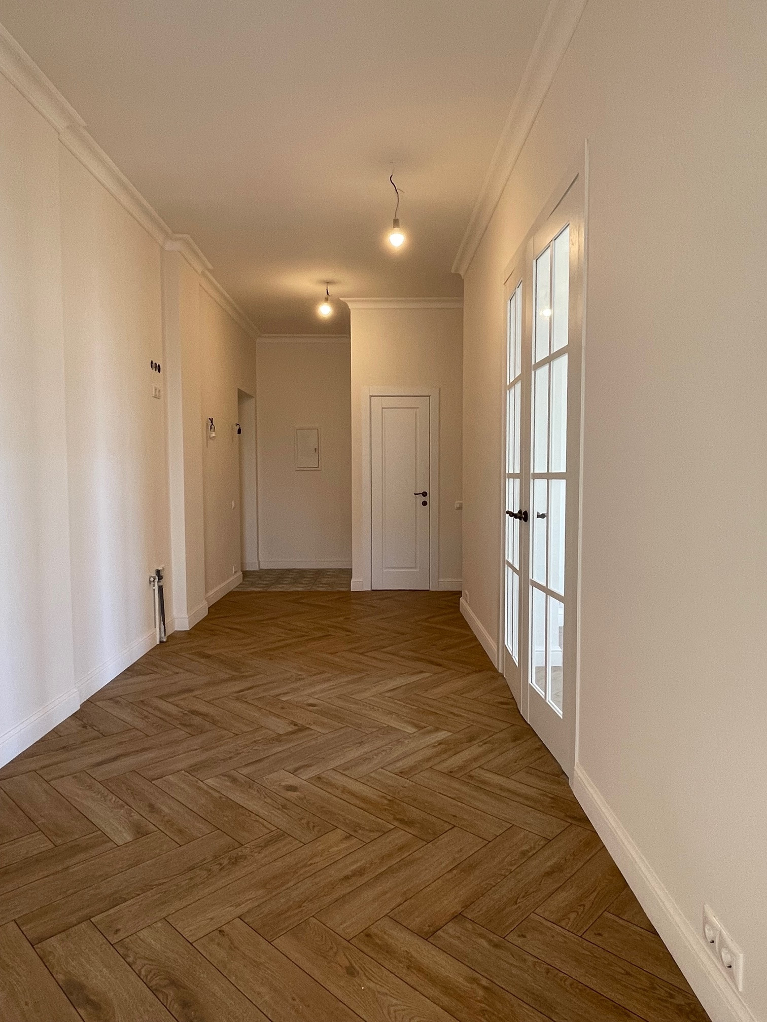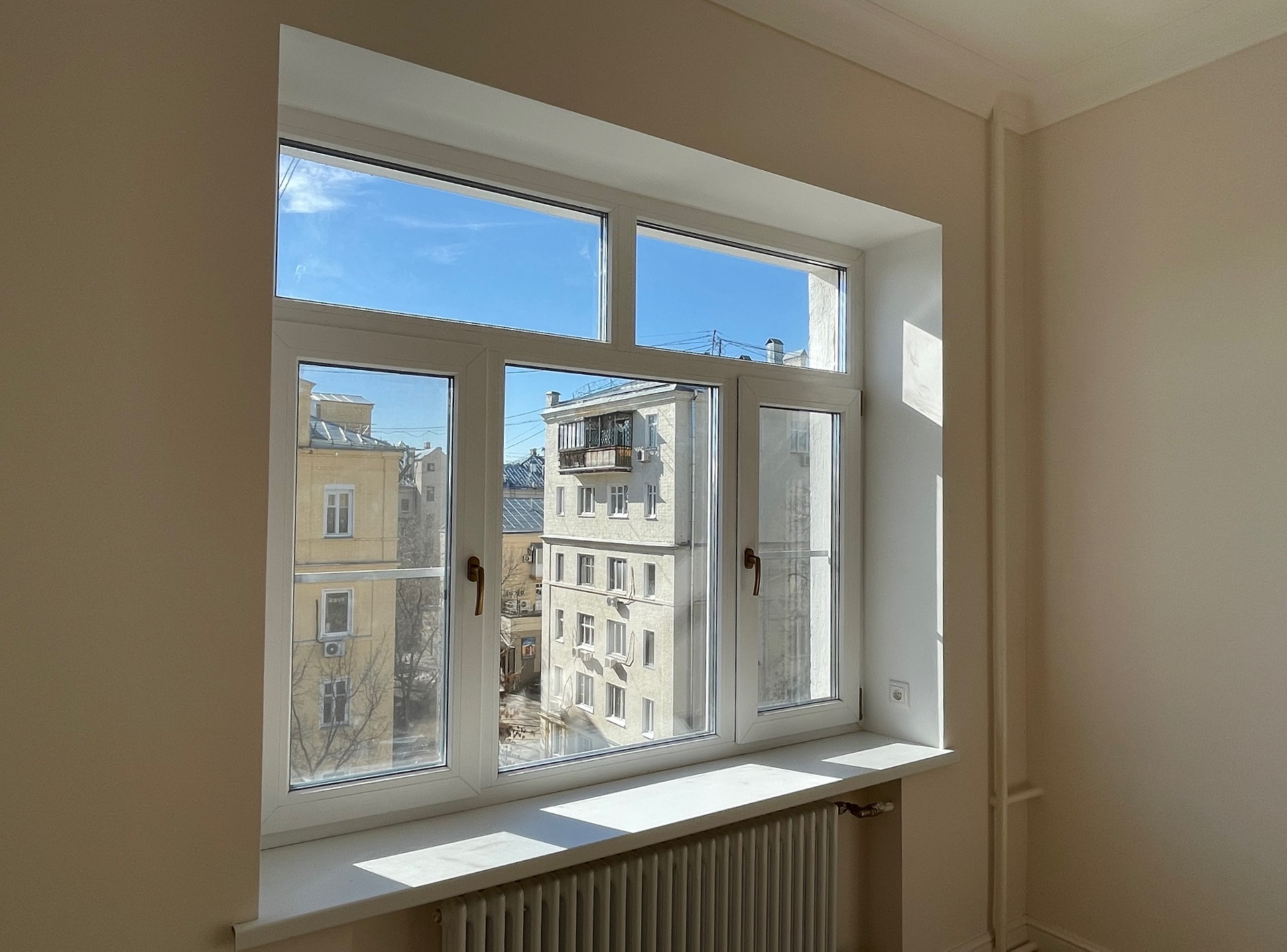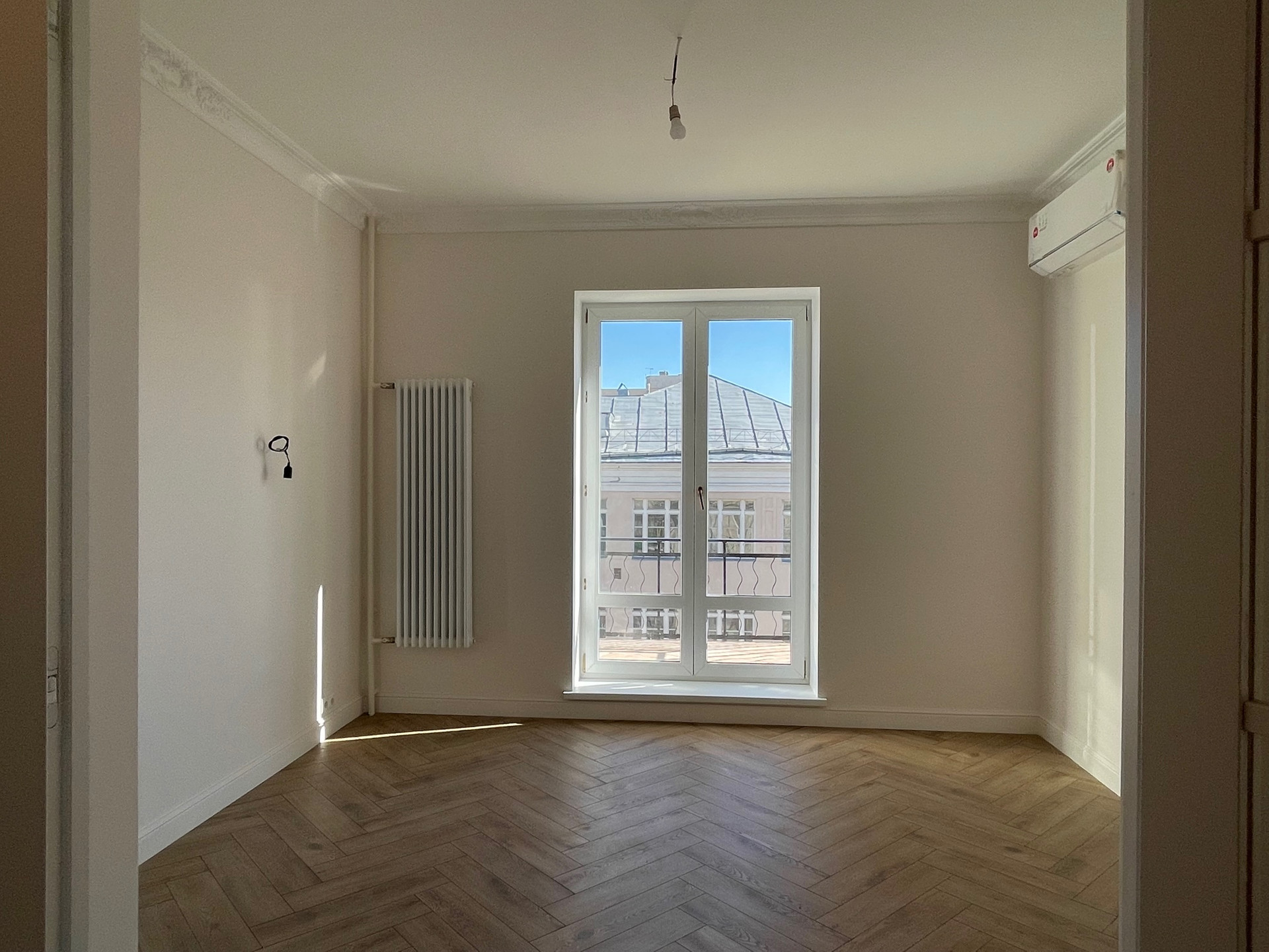 Новые радиаторы, сантехника, электрика, на окнах стеклопакеты, установлены кондиционеры с приточной вентиляцией, на полу влагостойкий ламината повышенной прочности.