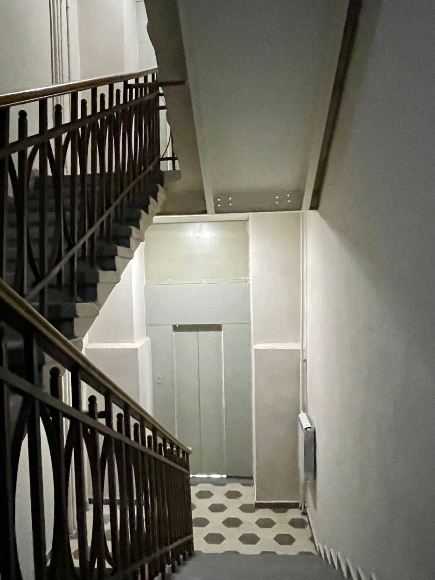 Лифт пристроен над подъездом, маленький! на 2-х человек.