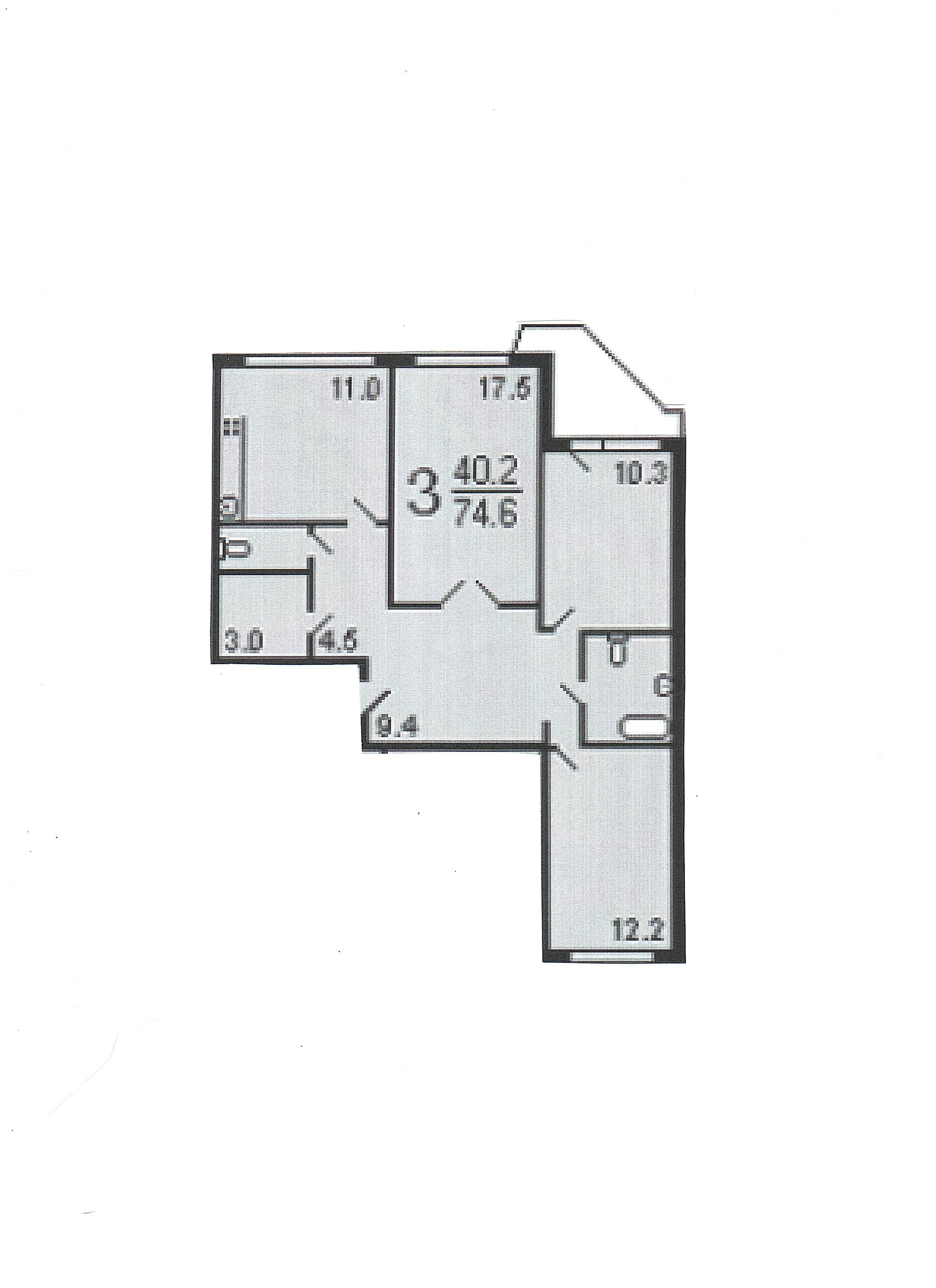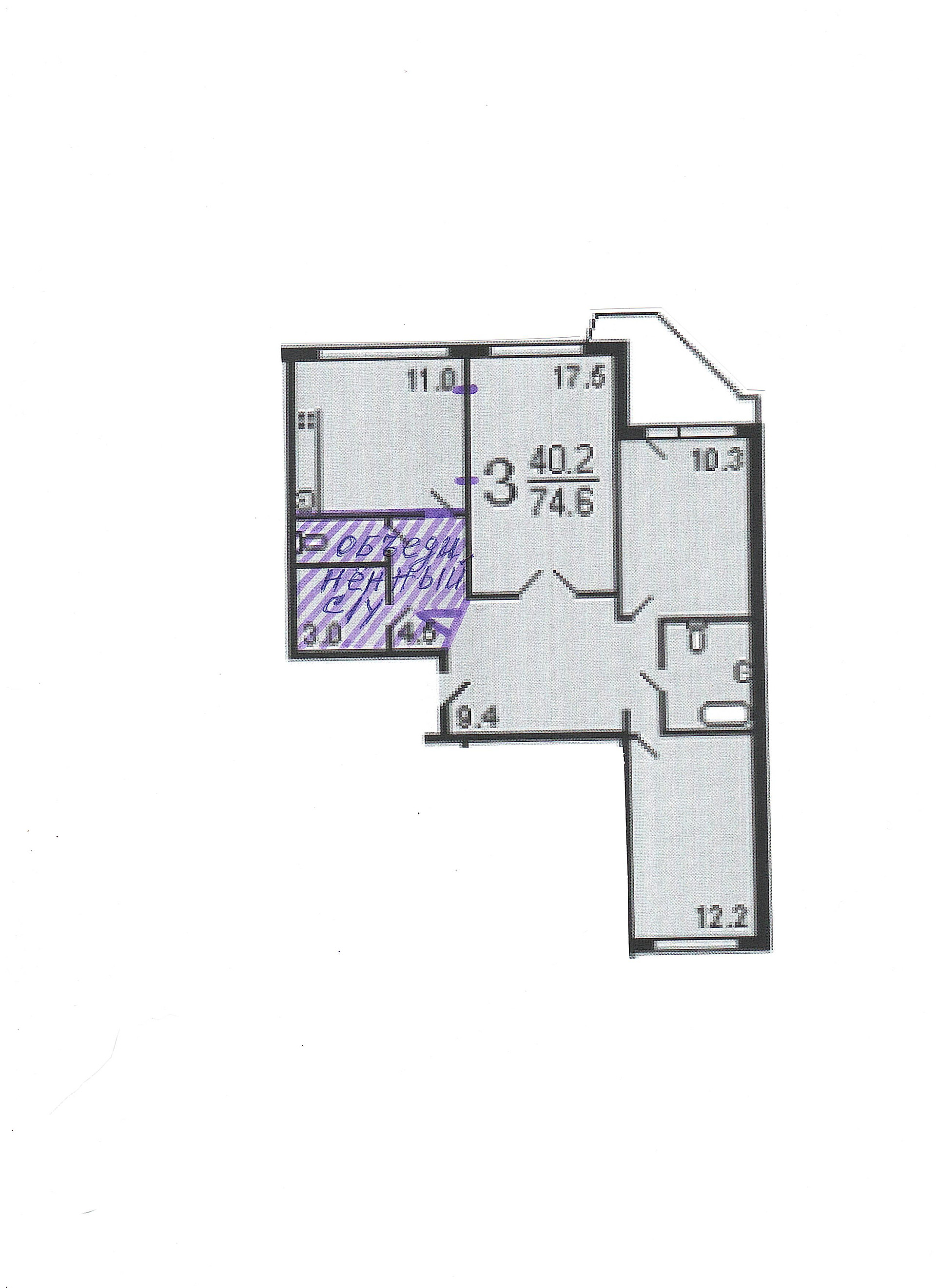 Общая площадь 74.3 м2