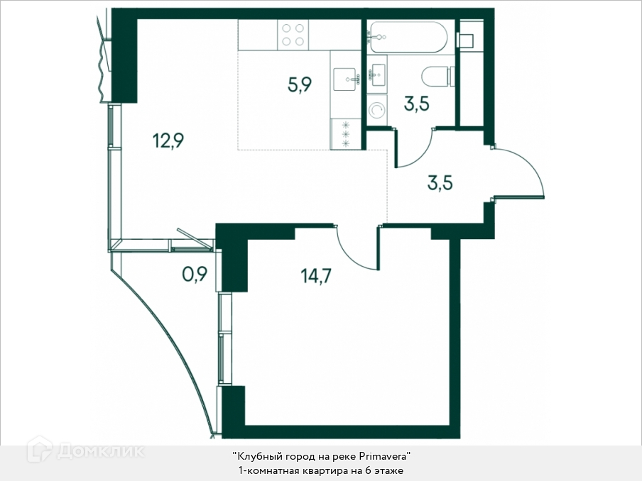 Жилая площадь 14.7 м2