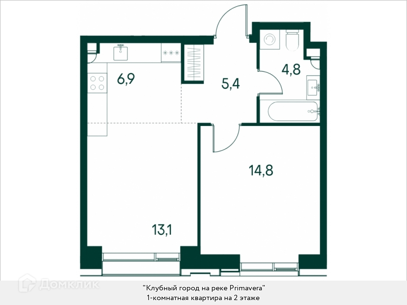 Жилая площадь 14.8 м2