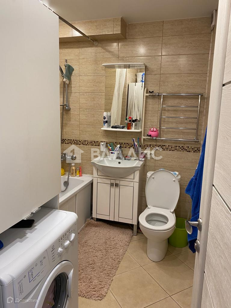 - На фотографиях квартиры показана мебель, бытовая техника, оборудованная ванная комната и туалет.