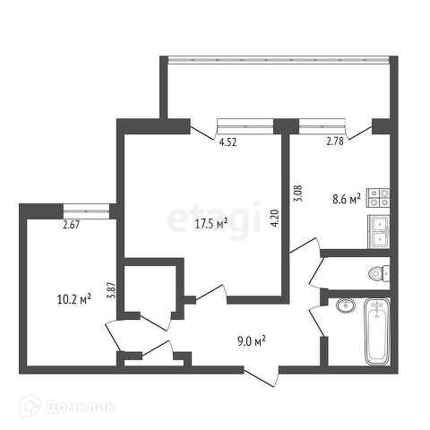 Общая площадь 54 м2