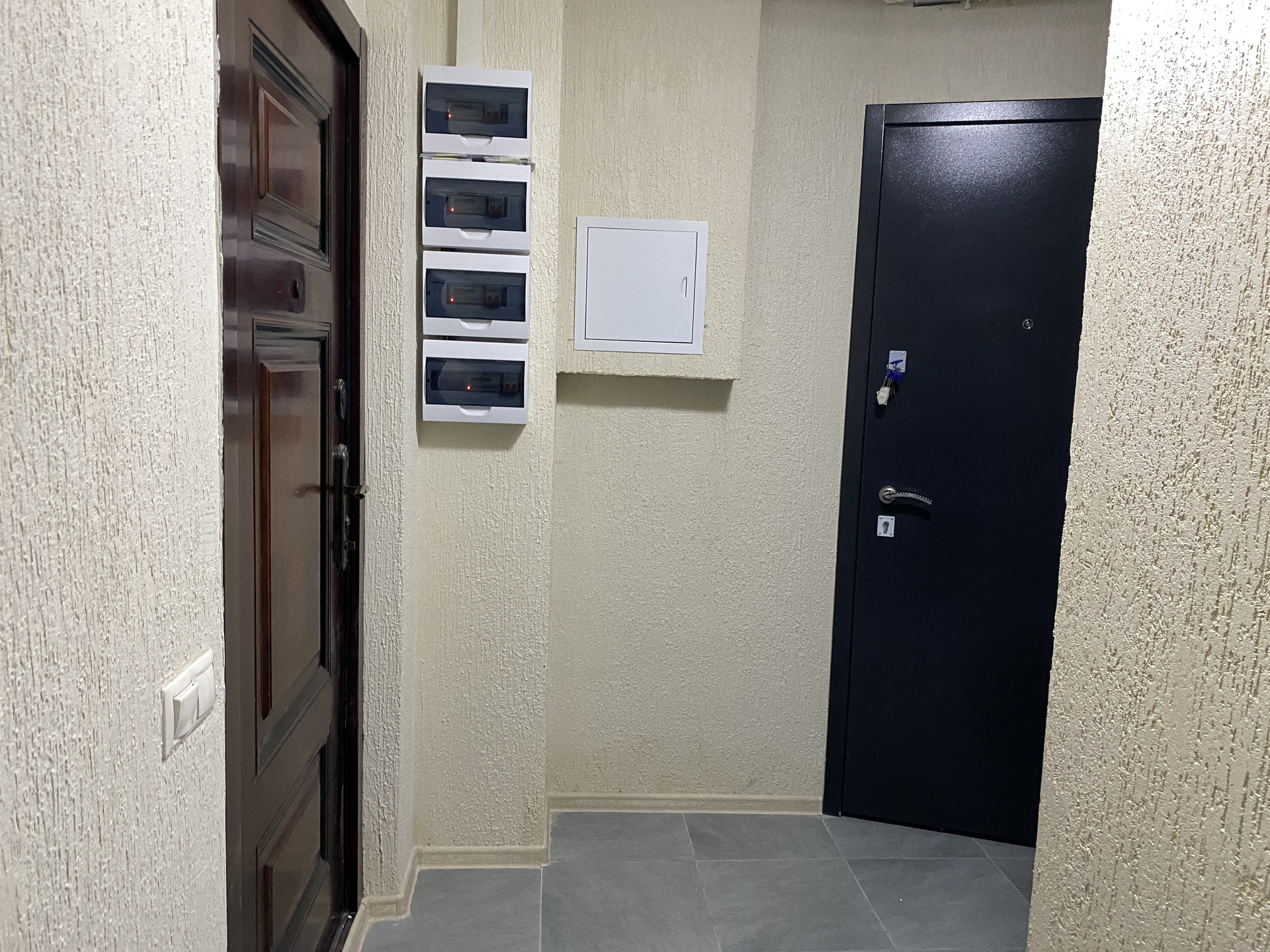 Металлическая новая входная дверь, индивидуальные счетчики на свет и воду,