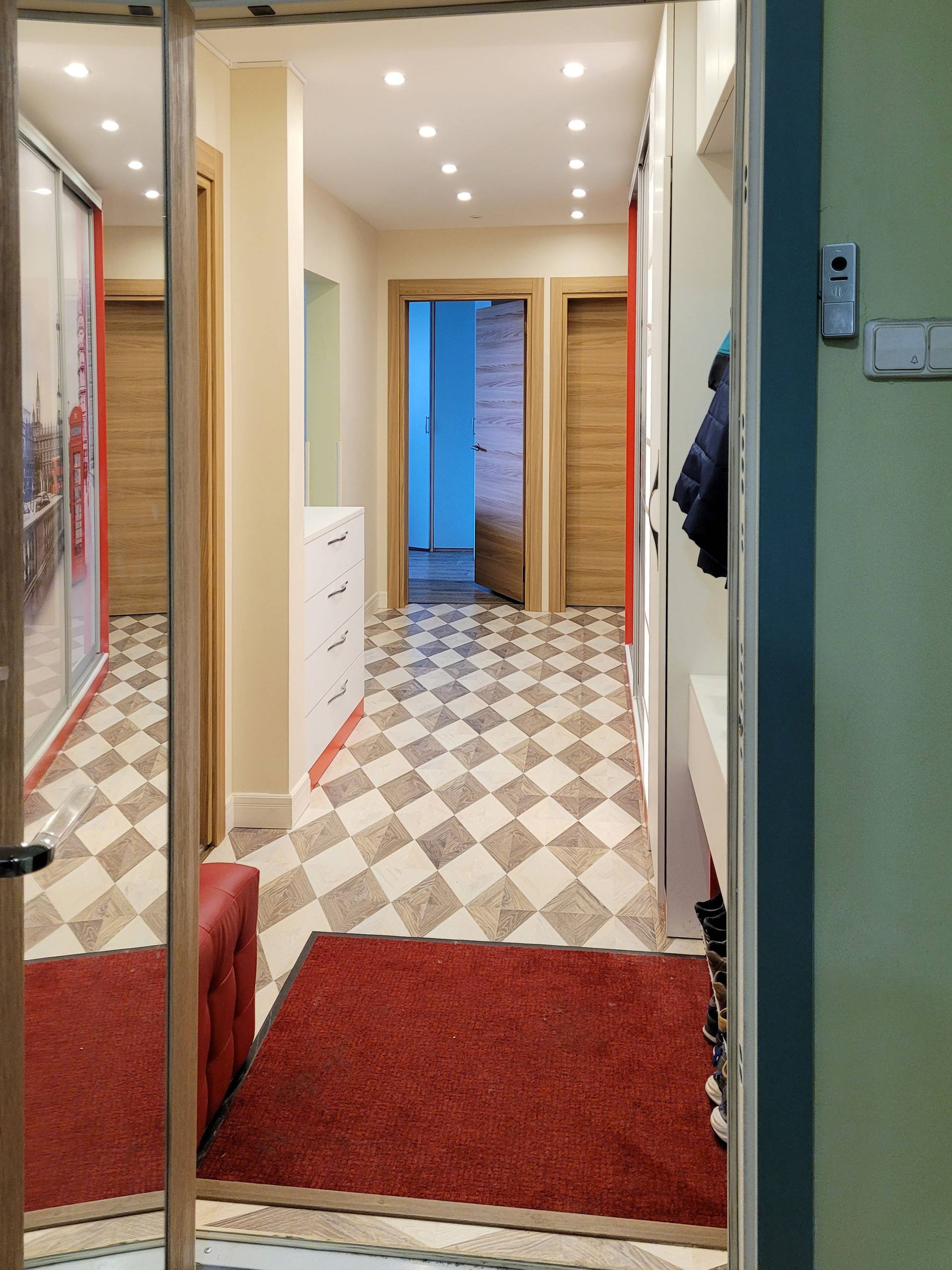 В коридоре большой вместительный шкаф-купе (остаётся).
