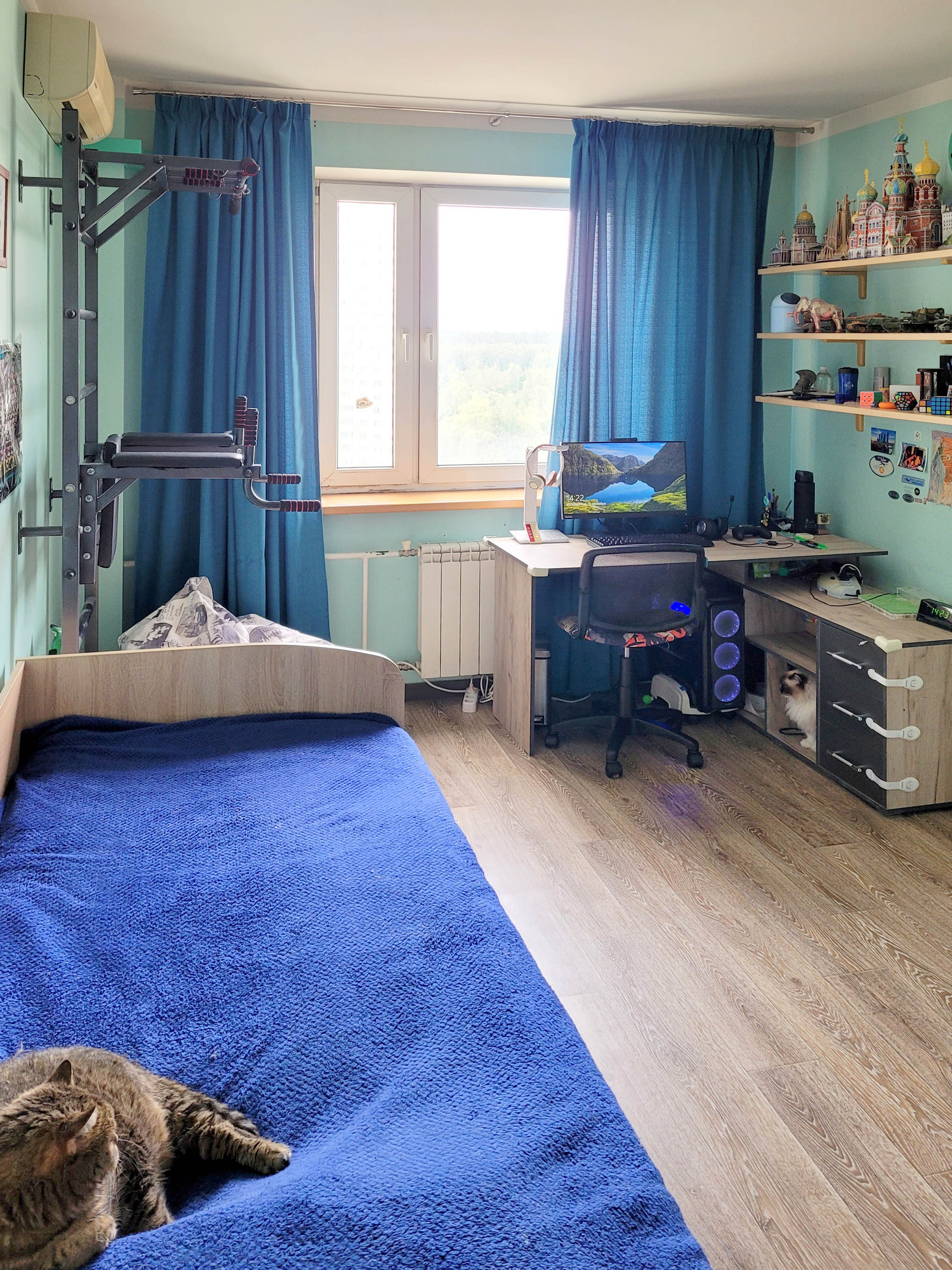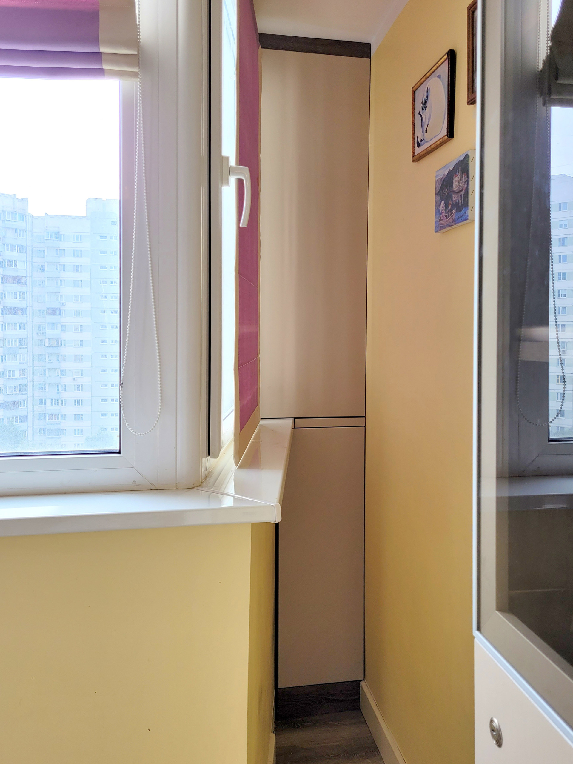 Присоединённая лоджия утеплена и застеклена (двойными аргоновыми стеклопакетами Kaleva), используется в качестве кабинета.