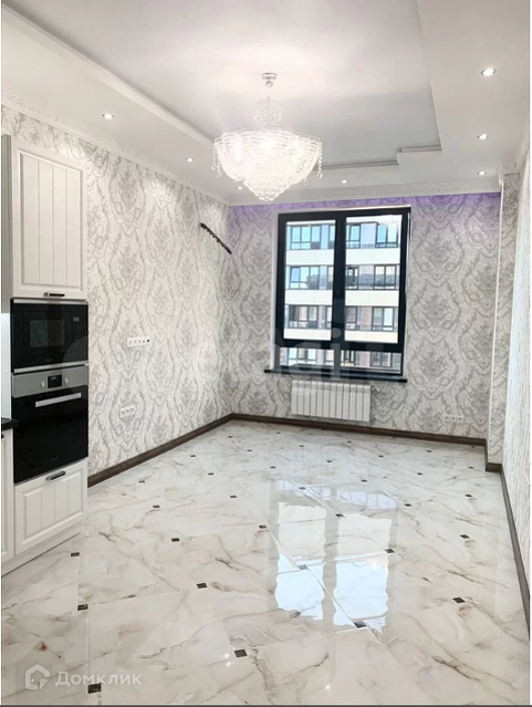 Две спальные комнаты по 18 и16,5, кухня -гостинная 22 кв.м. Оборудована кухонной мебелью и оснащена бытовой техникой , двухкамерный холодильник,кондиционер хрустальными и дизайнерским люстрами ,стиральной машиной и сушильной .Вся мебель и техника новая.