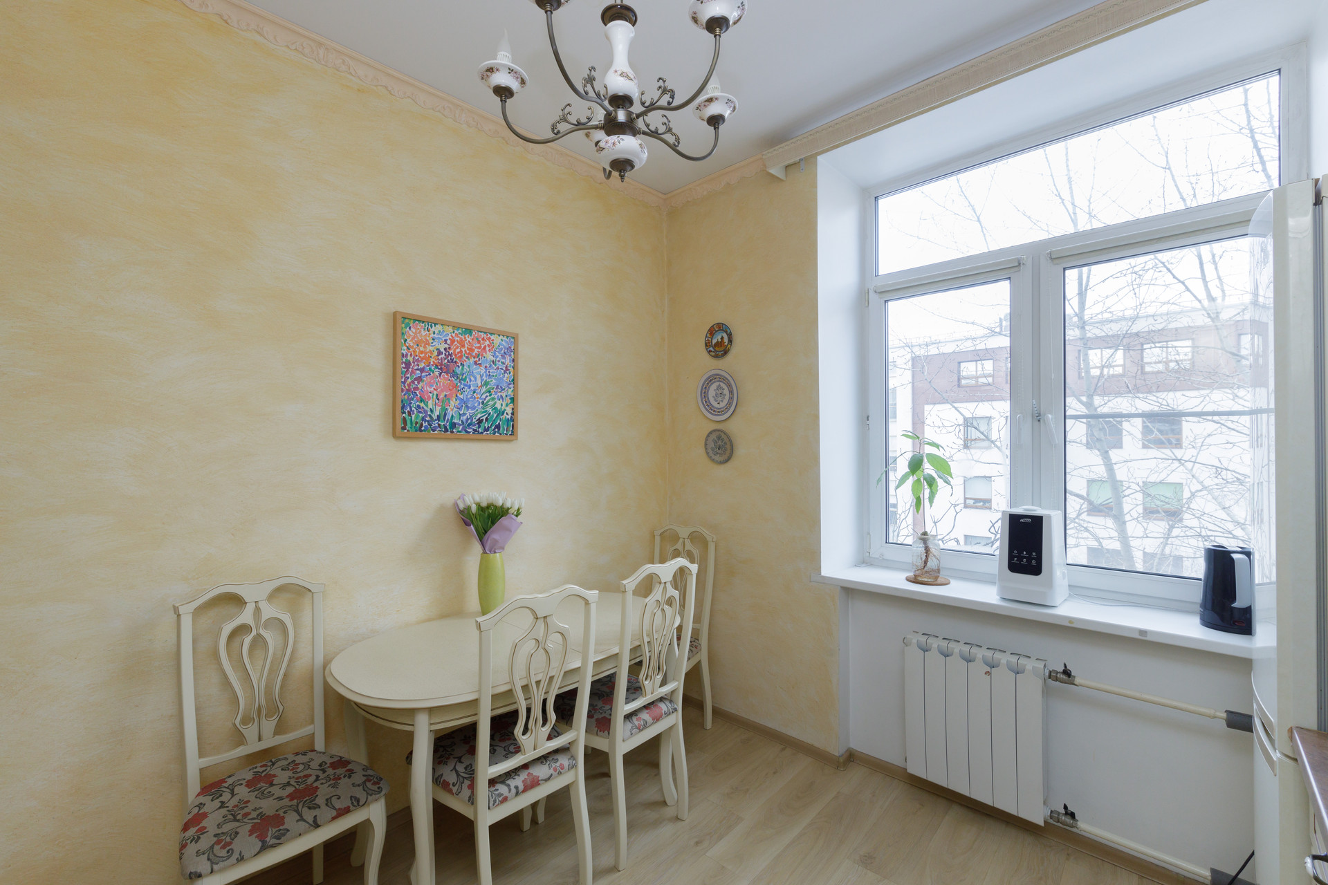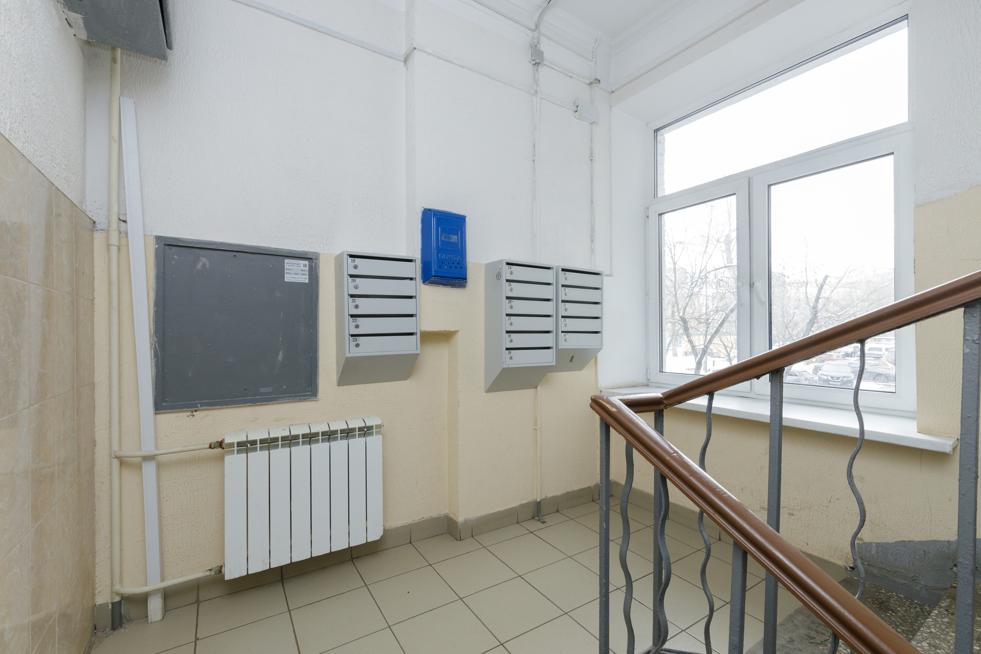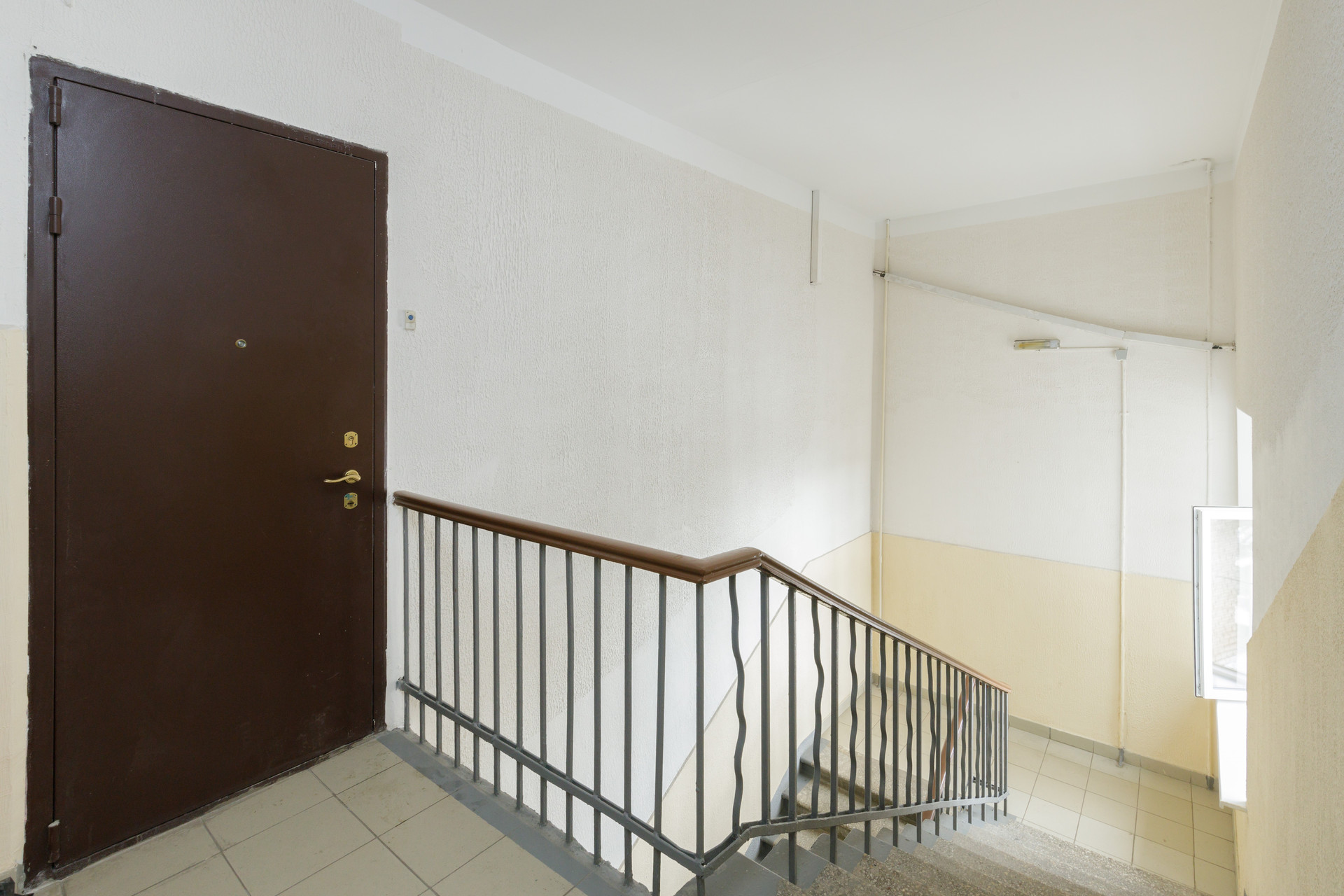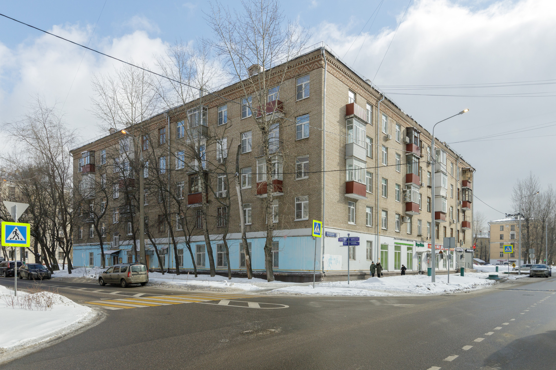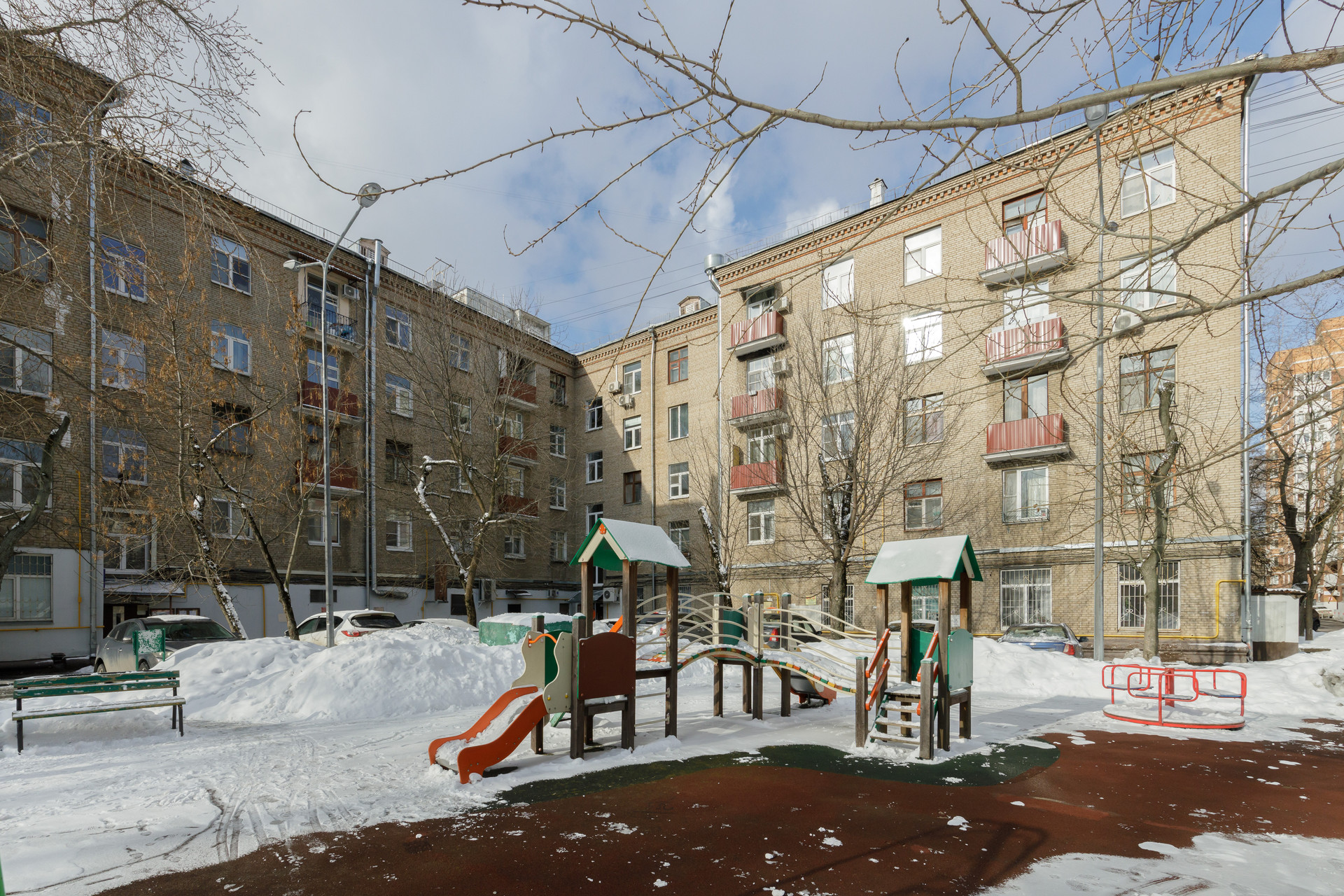 Расположена на 5 этаже 5 этажного кирпичного сталинского дома с высокими потолками.