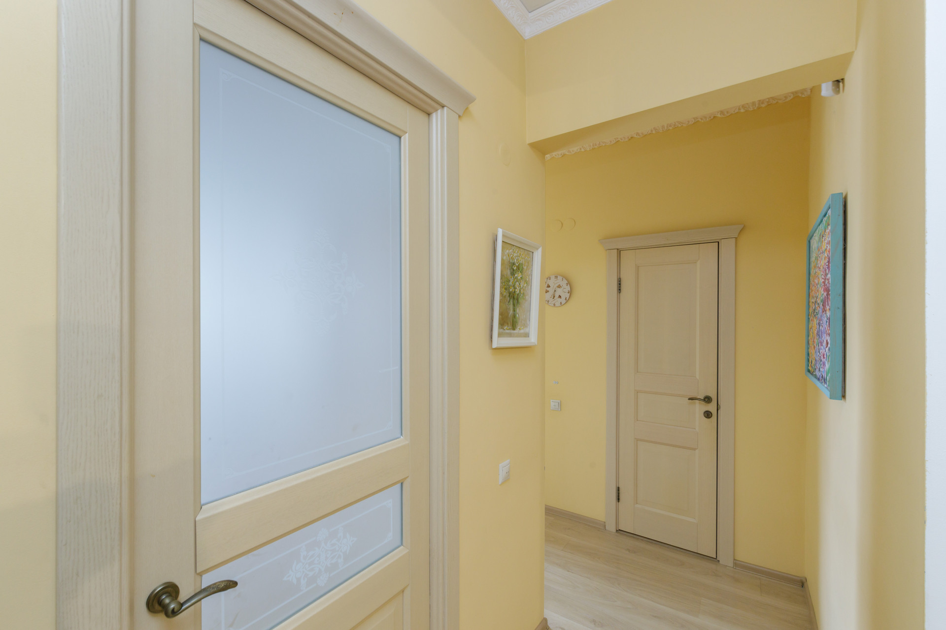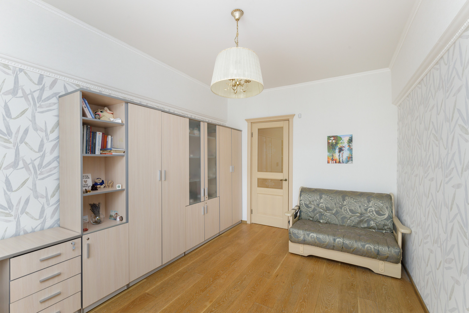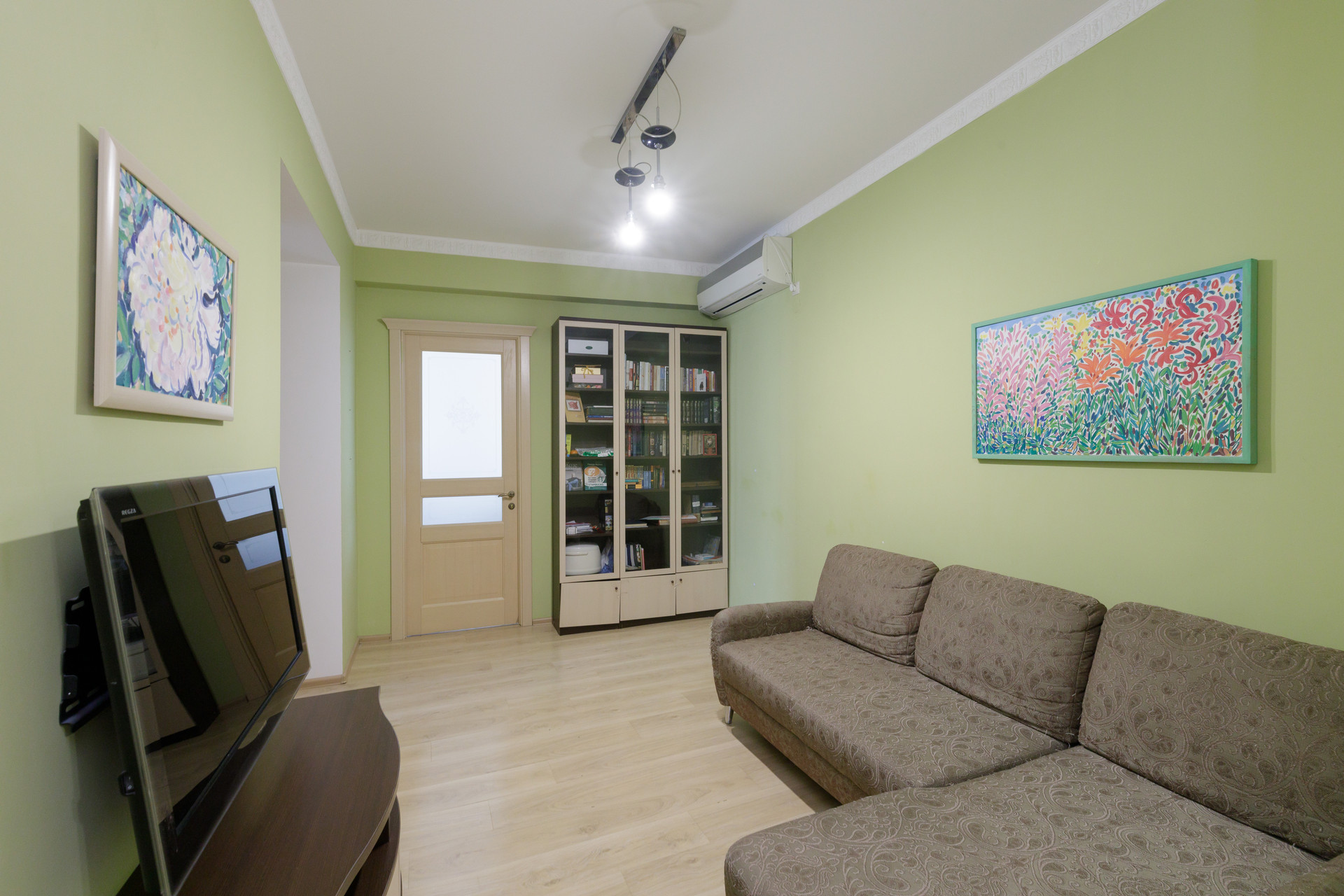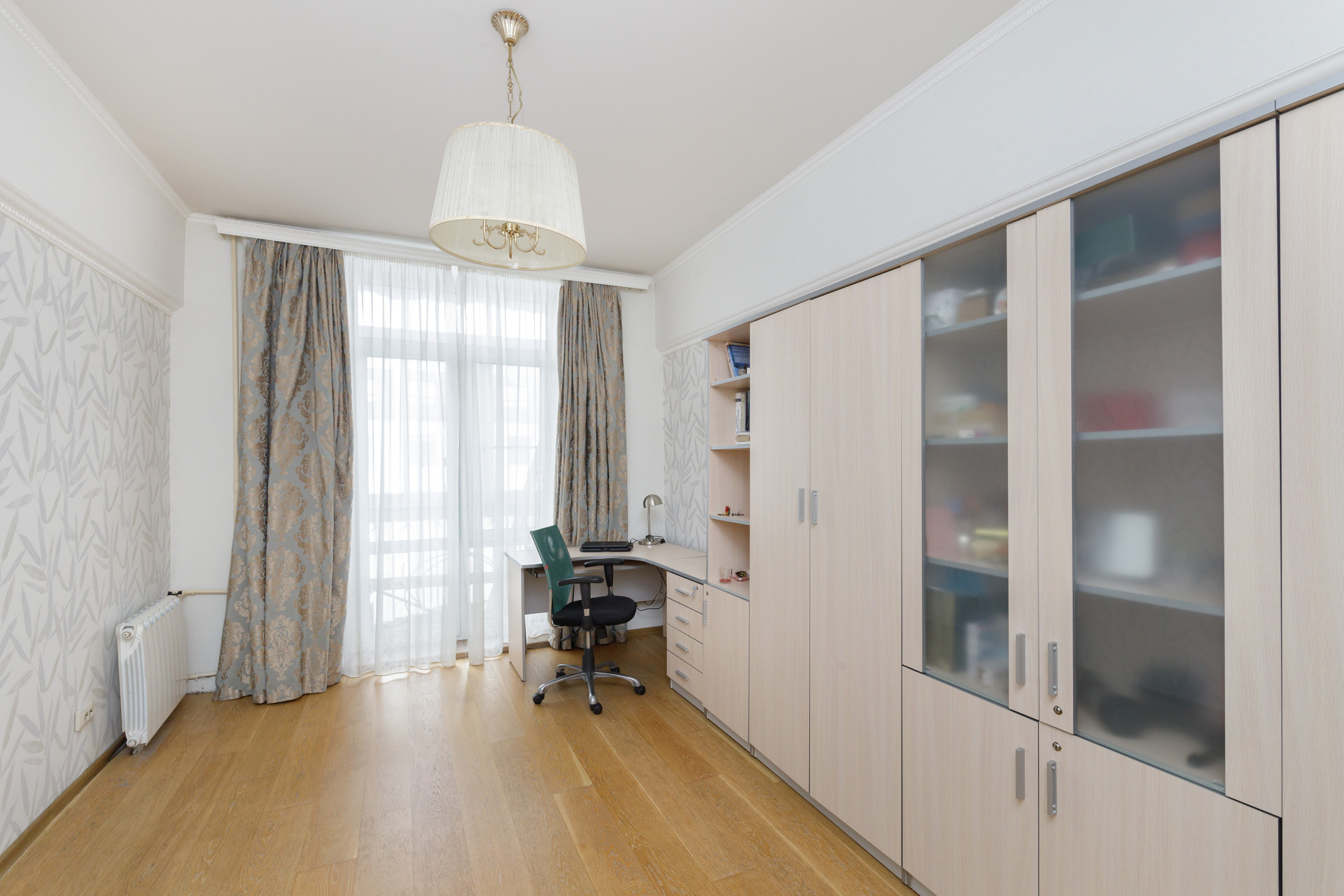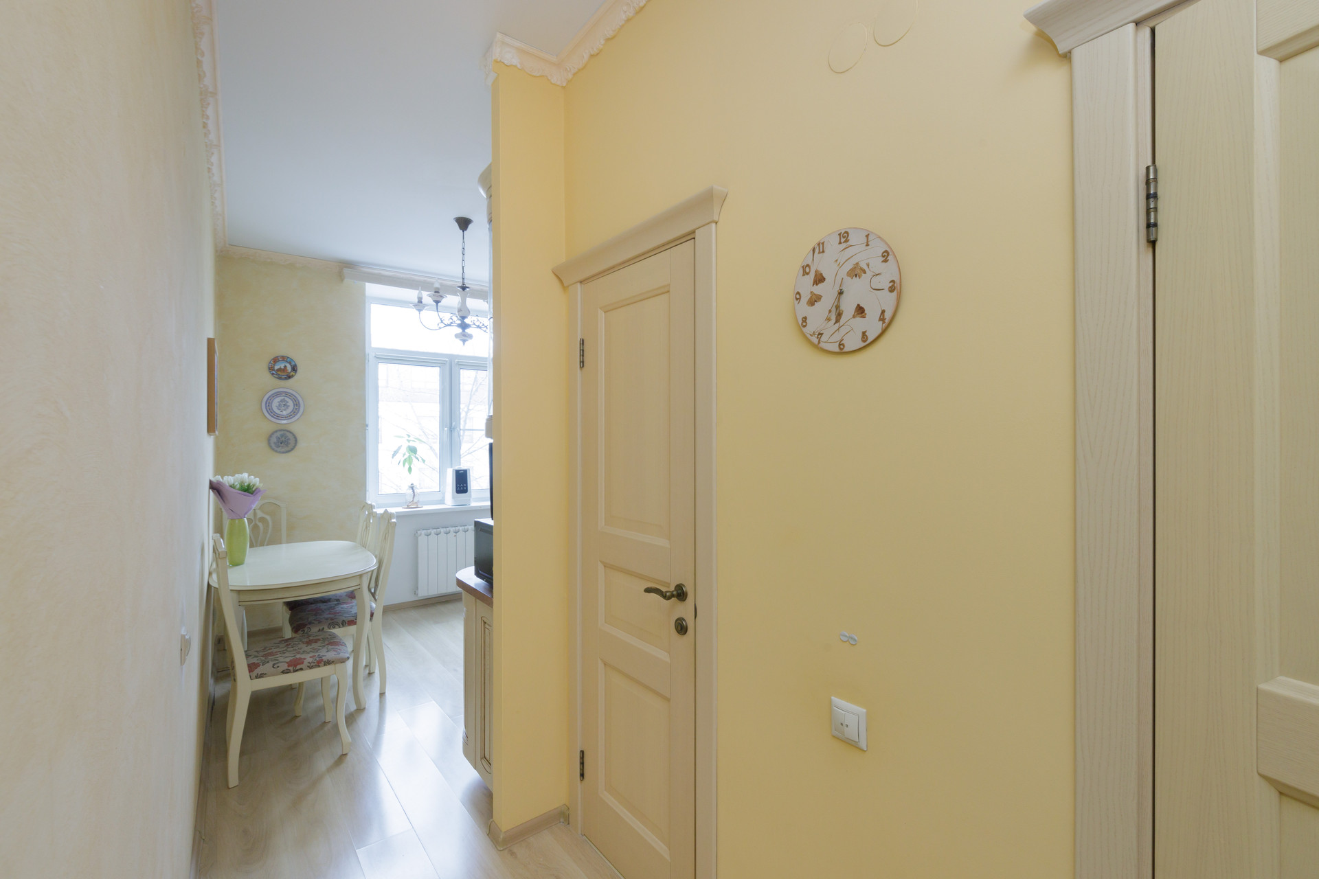 Расположена на 5 этаже 5 этажного кирпичного сталинского дома с высокими потолками.