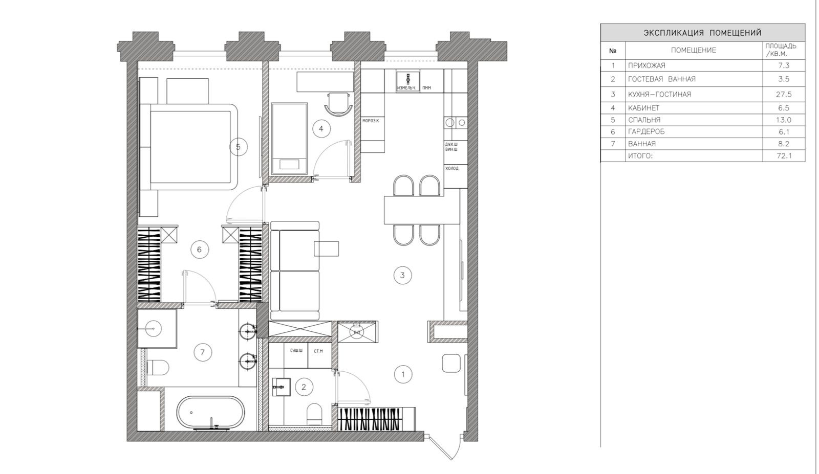 Общая площадь 72.1 м2