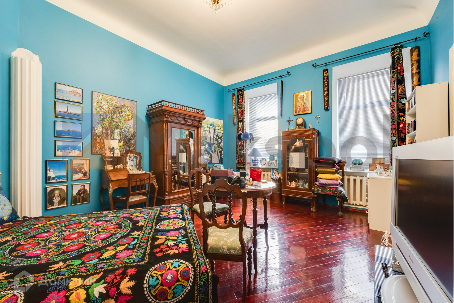 Благодаря большому количеству окон и ориентации на две стороны, квартира всегда максимально светлая. Из окон открываются виды на переулки столицы.