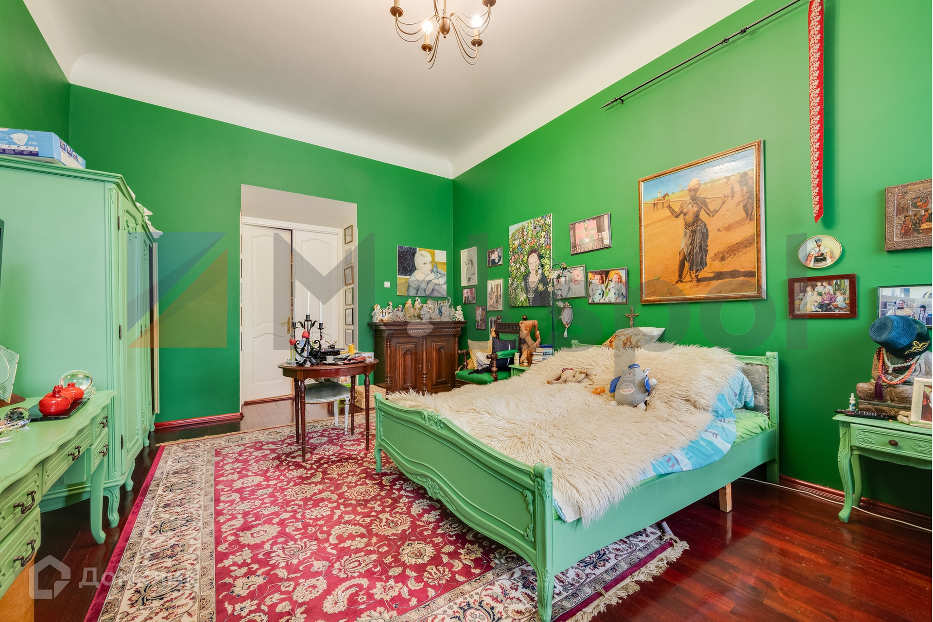 Планировка включает: кухня-столовая, две гостиные, три спальни, функционирующий оригинальный камин, гардеробная, просторная ванная комната с душевой кабиной, санузел, есть отдельный черный ход, и на площадке чулан для хранения.