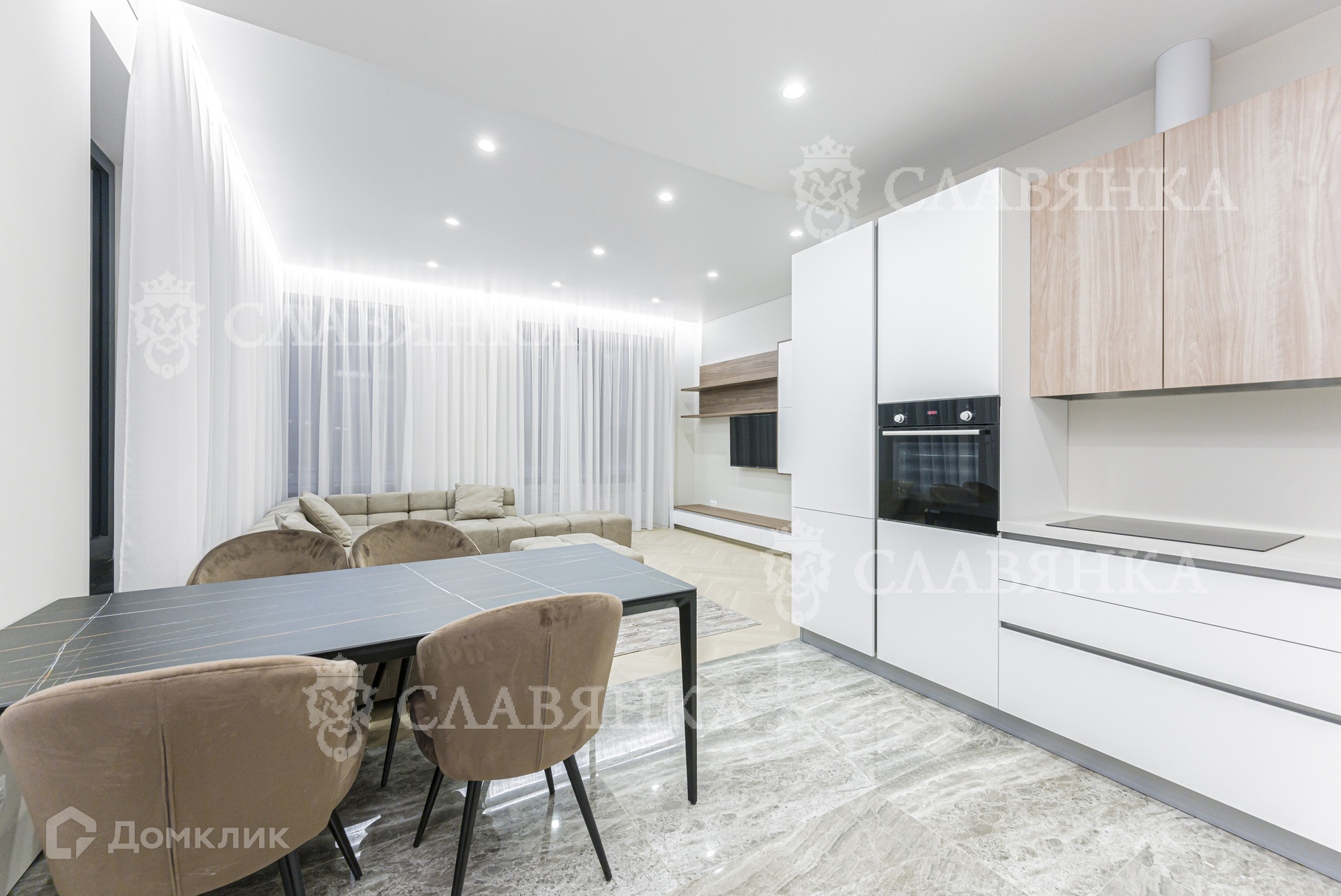 Студийная планировка совместила в единое пространство полностью оборудованную современной бытовой техникой кухню и зону гостиной с удобной мебелью. Спальня оснащена всем необходимым для комфорта. Два санузла (один полноценный (ванна), второй гостевой) оборудованы качественной европейской сантехникой. Предусмотрено много мест хранения - встроенных шкафов. Установлены: система кондиционирования, теплый пол; бойлер.