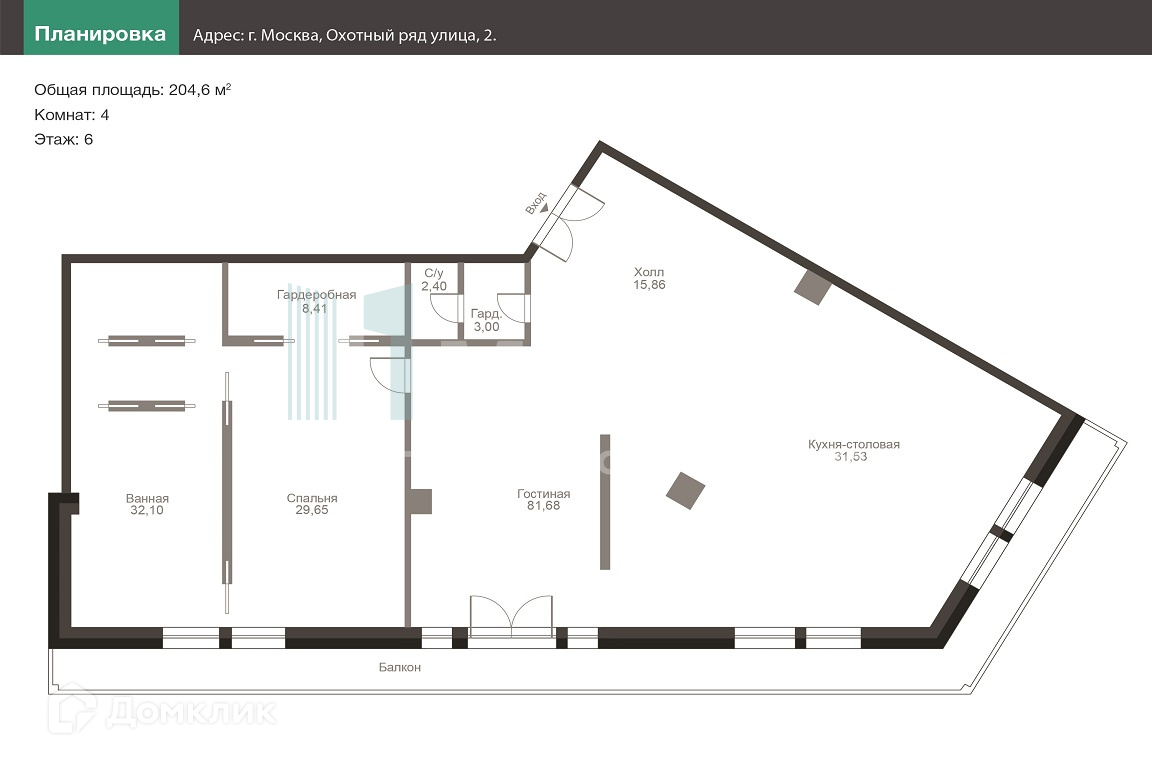 4-комнатная квартира, 204.6 м2, этаж 6 / 22, на продажу в Москве, улица Охотный Ряд, 2