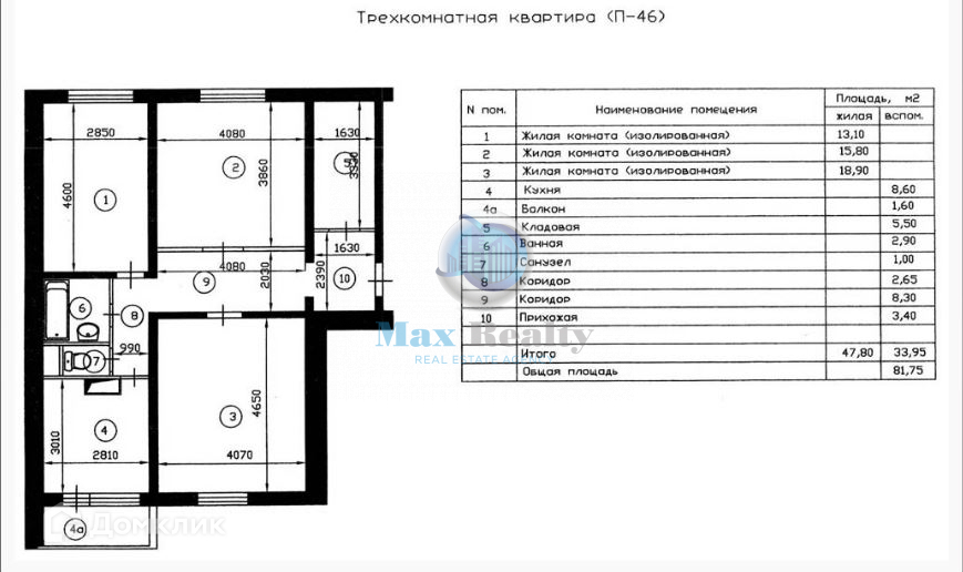 Общая площадь 81.75 м2