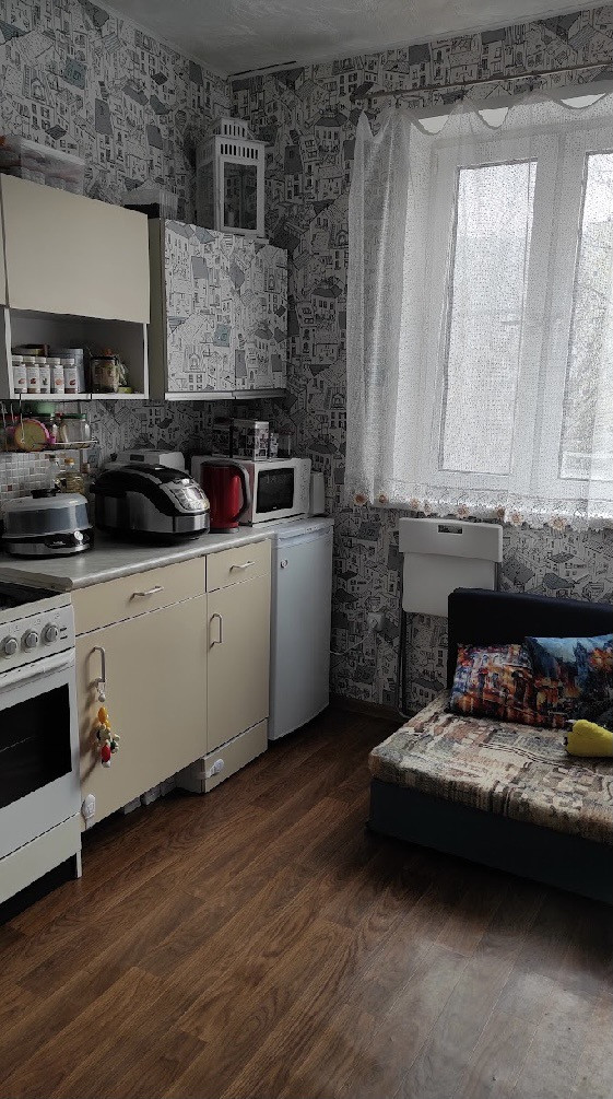 Уютная квартира, окна во двор. Детская площадка и школа в прямой видимости.