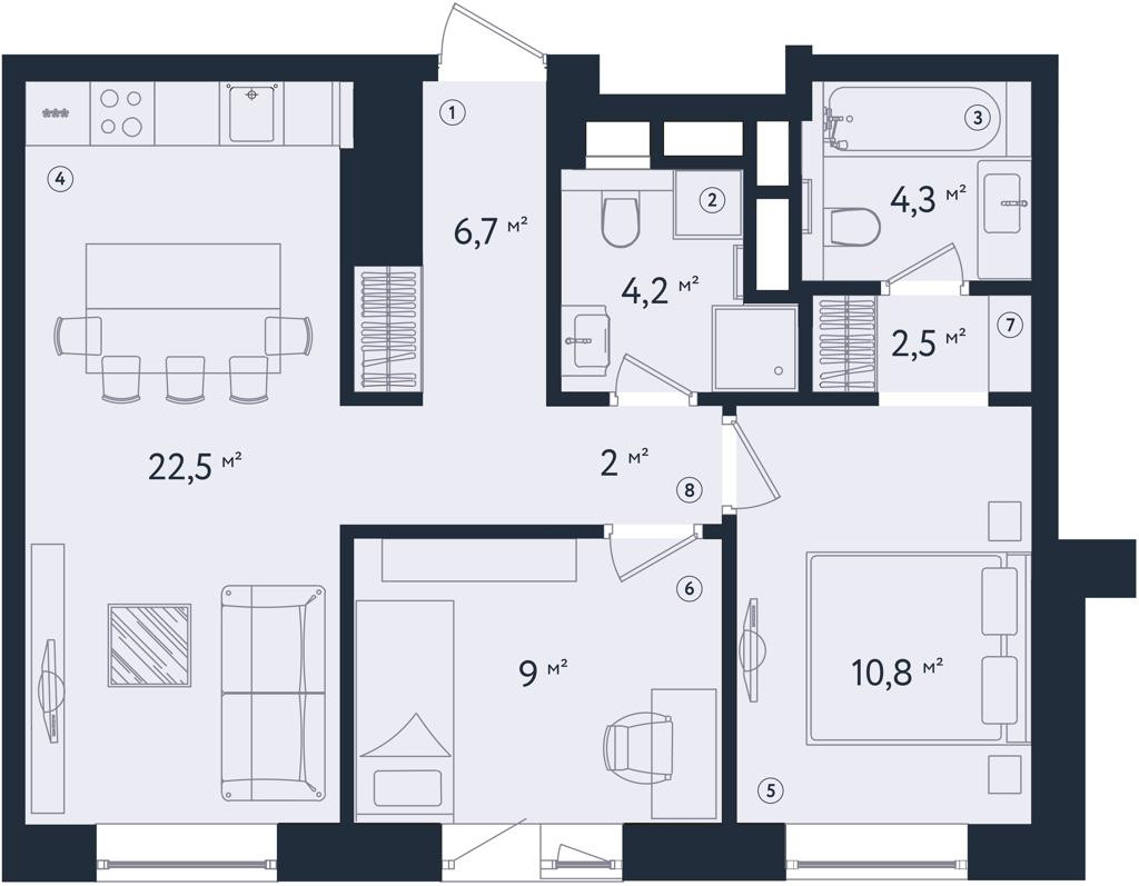 Общая площадь 62 м2