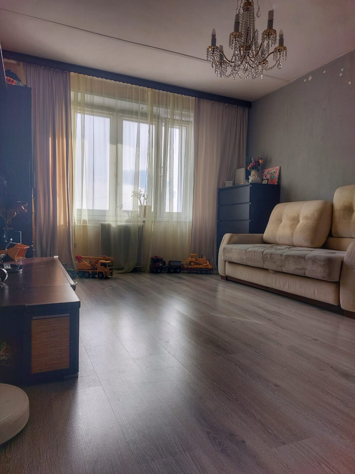 Квартира в  хорошем состоянии, со свежим ремонтом. Не сделали только  натяжные  потолки. Последний  этаж 12-й крыша полностью обслужена над нами ещё  находится два технических этажа. В доме сделан  капитальный ремонт, заменены все коммуникации и сделано внешнее утепление с облицовкой фасадов плиткой. В 2020 была замена лифтов на новые.
