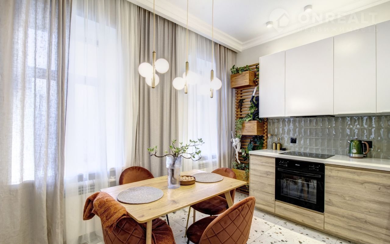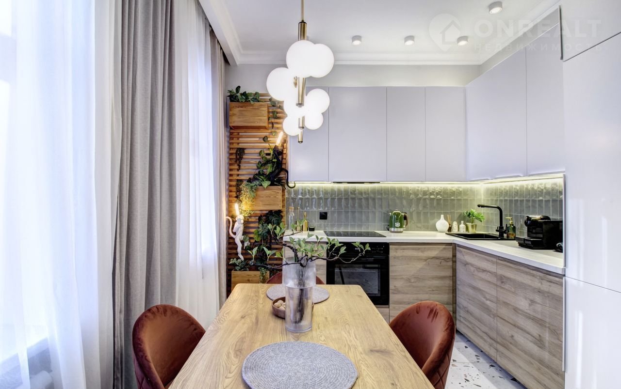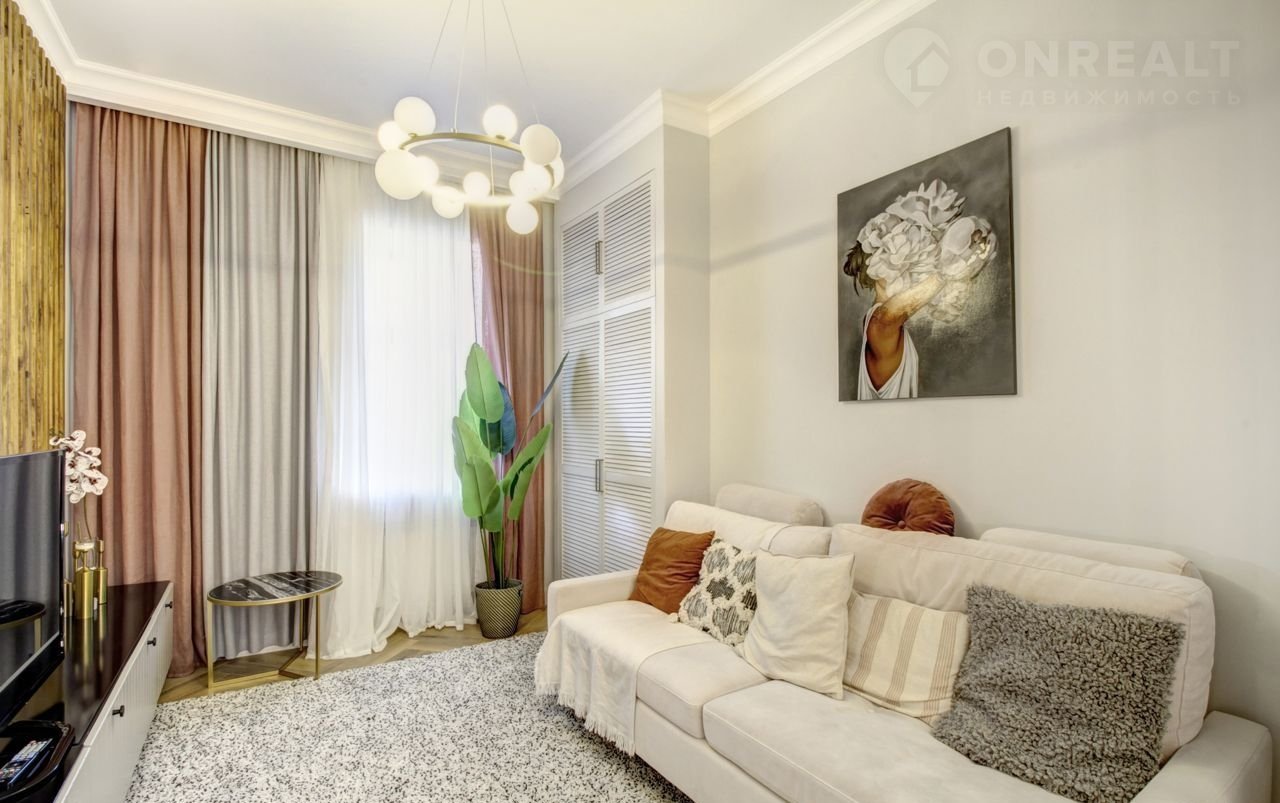 В квартире выполнен дорогостоящий ремонт по авторскому проекту с полной заменой всех коммуникаций. Планировка: просторная кухня, переходящая в гостиную, разделенные стеклянной перегородкой, изолированная спальня с большой гардеробной, комната свободного назначения (детская, кабинет или гостевая),  совмещенный санузел, постирочная со стеллажами для хранения.  Дом трехэтажный, всего на 9 квартир, в историческом центре города. В шаговой доступности м. Проспект Мира, рядом с домом Ботанический сад МГУ, кафе, рестораны и прочая инфраструктура центра. Прописка ЦАО. Свободная продажа, никто не прописан.