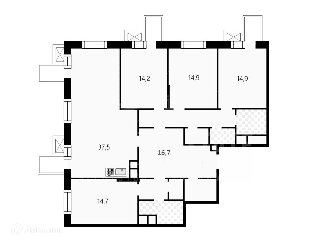 Функциональная планировка состоит из 4 отдельных спален и просторной кухни-гостиной с 2 балконами. Есть возможность сделать 2 мастер спальни.