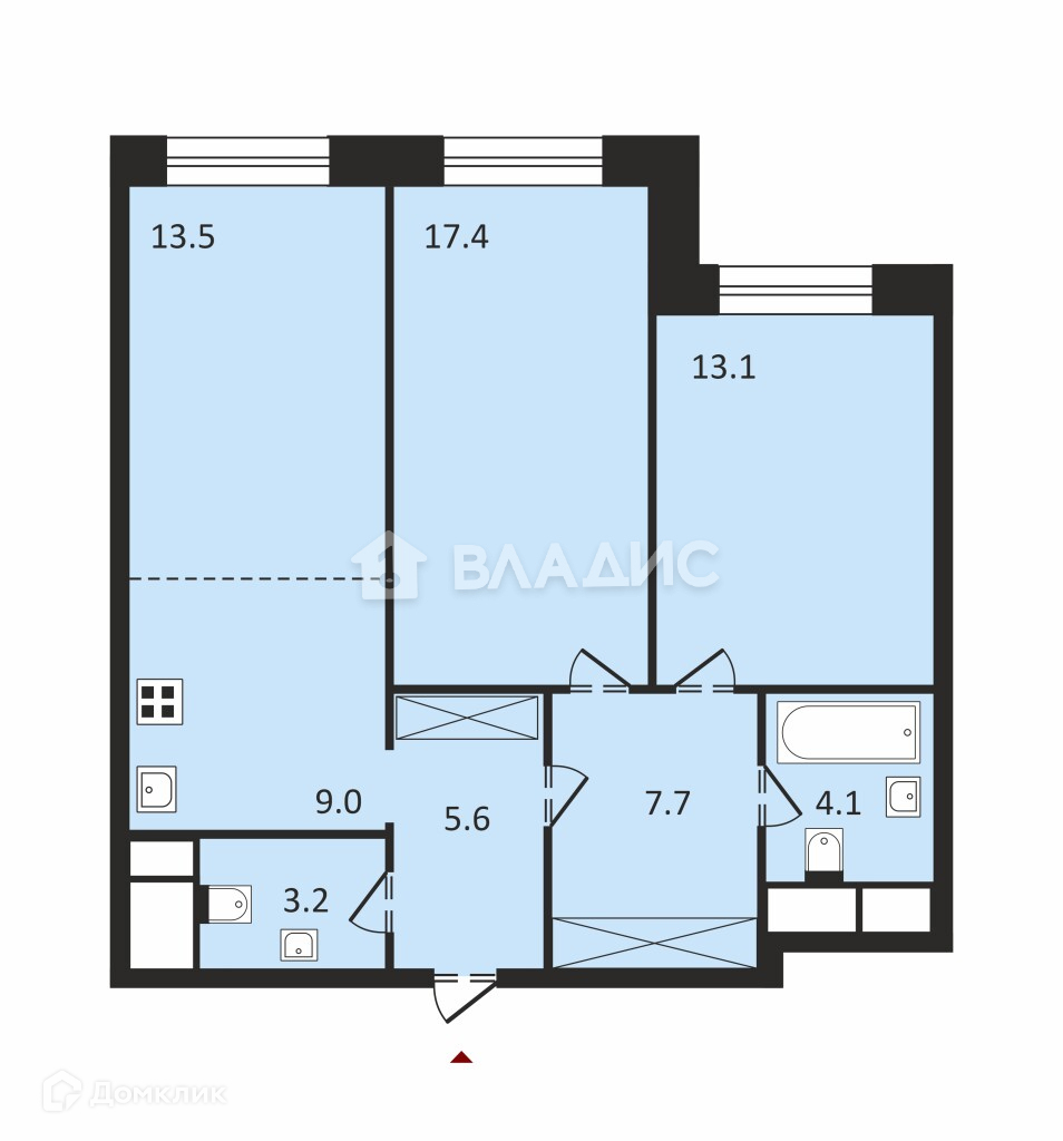 Общая площадь 74 м2