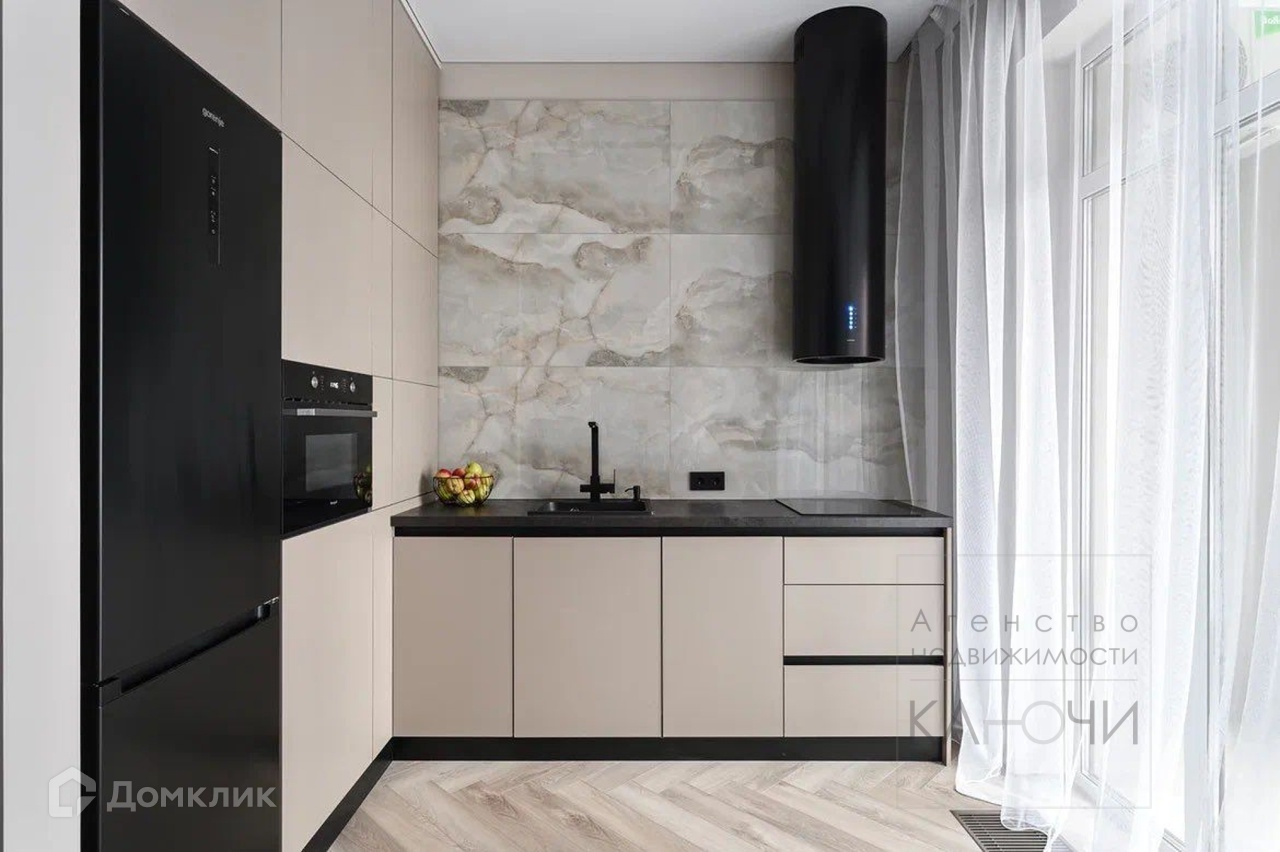 Id 8267. В квартире сделан евроремонт. Встроенная кухня с бытовой техникой. Вид из окон на улицу.