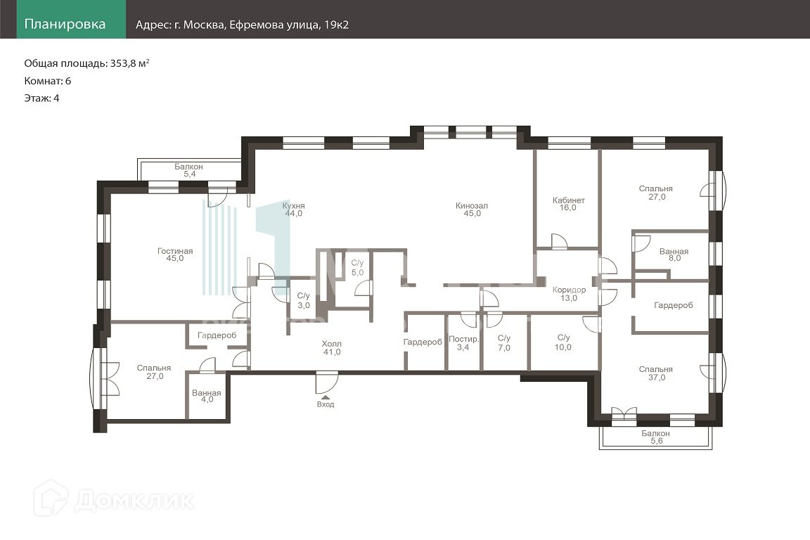 Общая площадь 353.8 м2