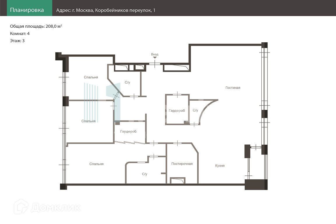 Общая площадь 208 м2