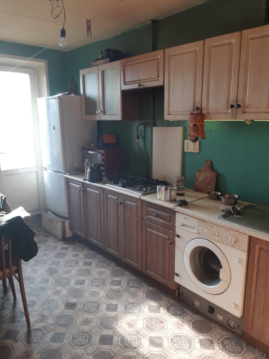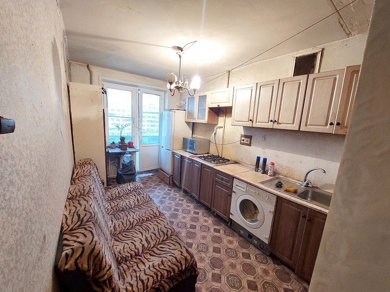 В квартире большая комната 19,9 кв.м правильной формы, кухня 9 кв.м, лоджия с выходом из кухни, совмещенный с/у.