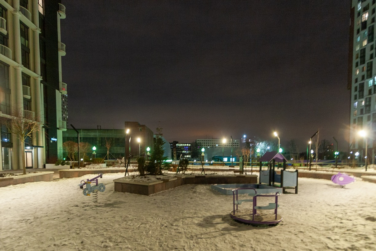 - Оборудованная детская площадка и зона для Workout.