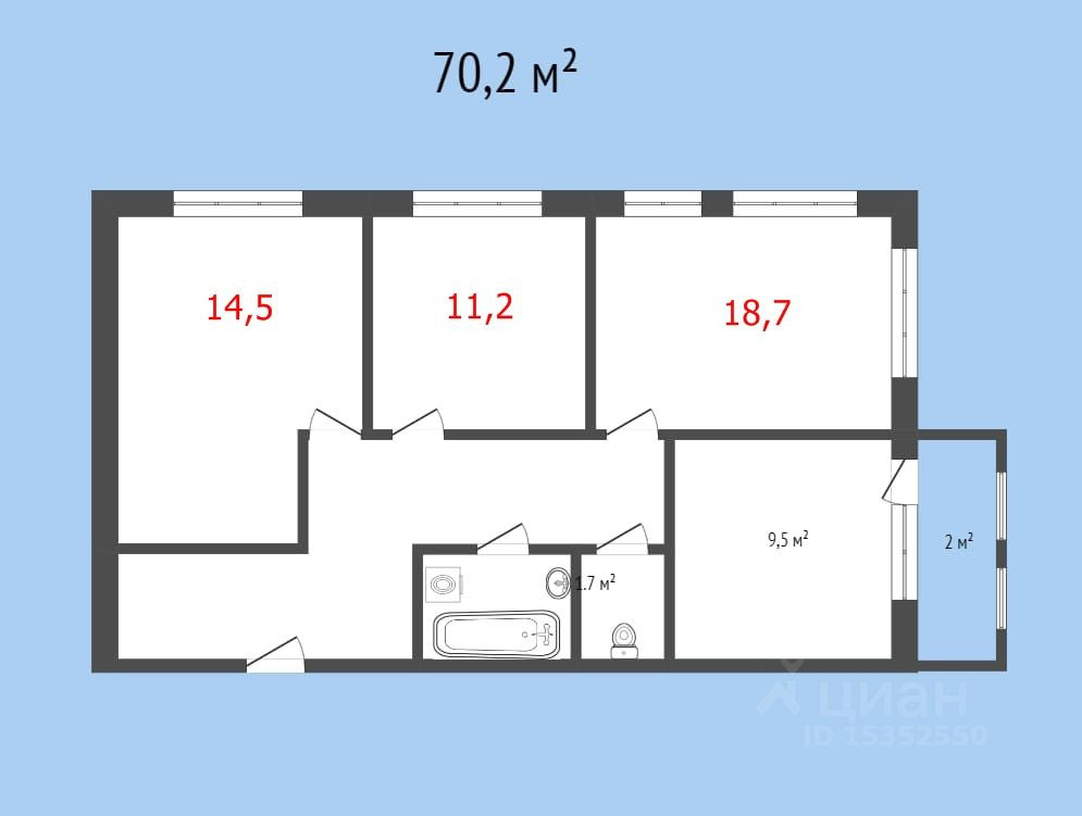 Общая площадь 70.2 м2