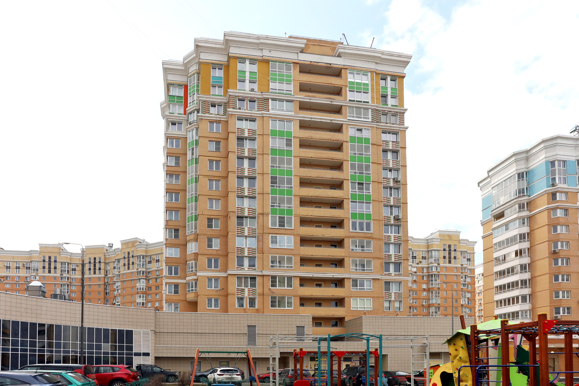 Благоустроенная уютная придомовая территория, современные детские площадки.