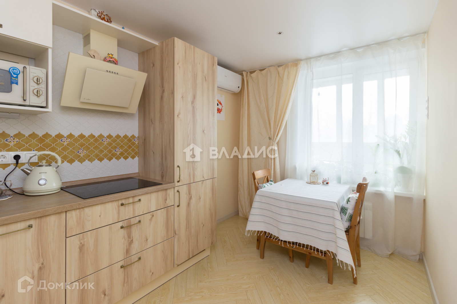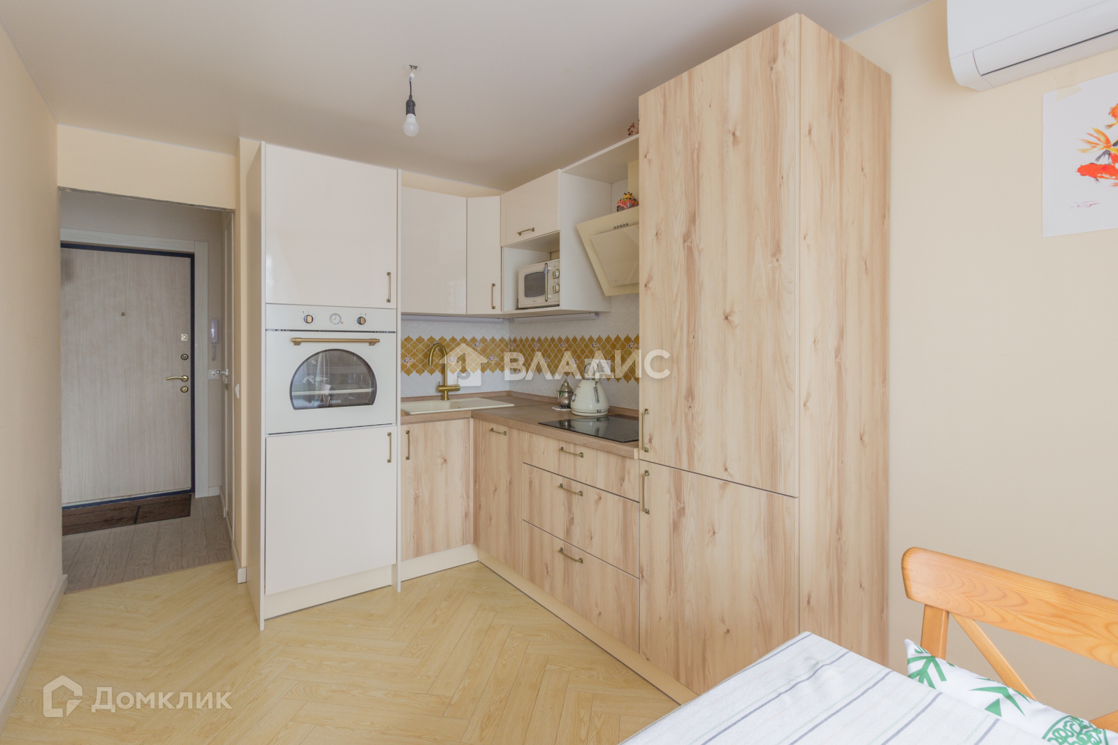 Общая площадь 34,1 м2, кухня 10 м2. В квартире выполнен качественный ремонт, стены под покраску, натяжные потолки, кафель, встроенная бытовая техника (холодильник, пм машинка, стиральная машинка) и мебель остаются.