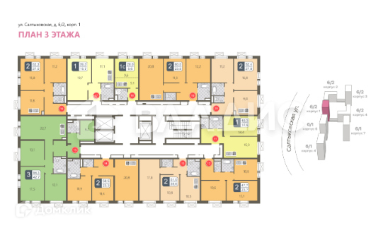 2-комнатная квартира, 51 м2, этаж 3 / 22, на продажу в Москве, Салтыковская улица, 6/2к1