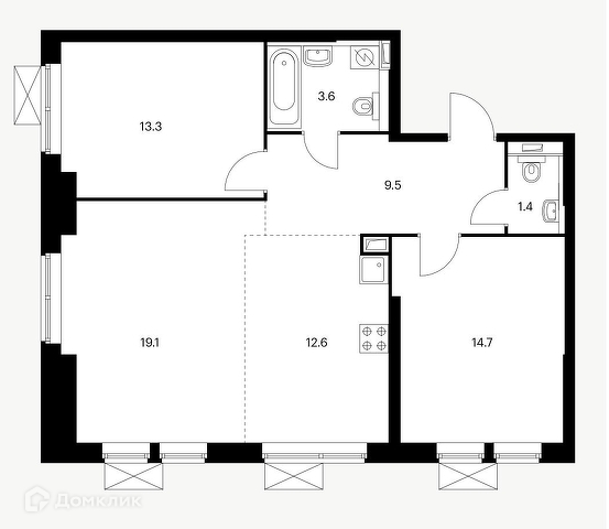 КВАРТИРА: продается с чистовой отделкой и функциональной планировкой: две изолированные комнаты, два санузла, просторная кухня-гостиная с большими окнами и прихожая, позволяющая организовать вместительные системы хранения.